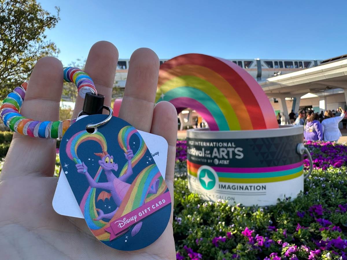 And whether you’re shopping or dining (Or both. Probably both) during the EPCOT International Festival of the Arts, you can pick up whatever you desire using this Figment-inspired gift card made specifically for the festival.