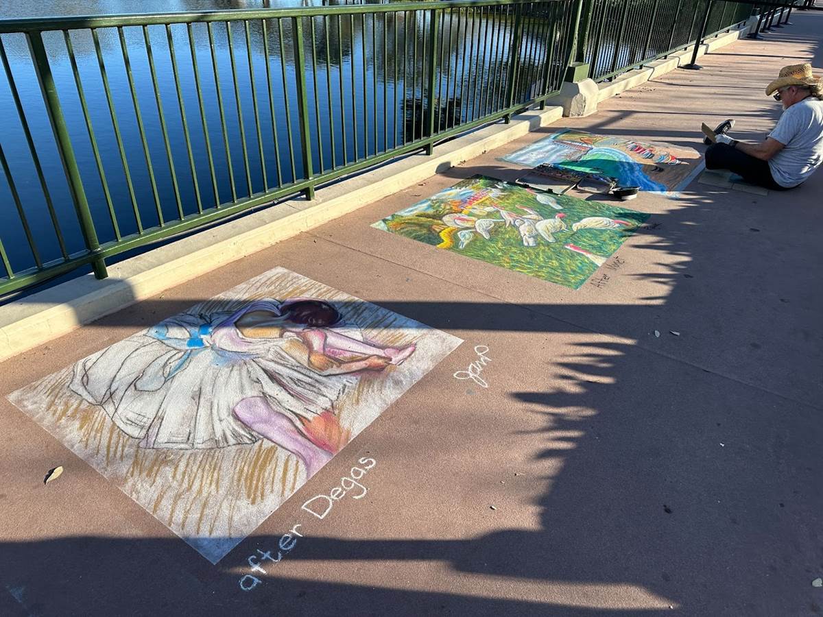Some familiar colorful decor can already be found around EPCOT, including some unbelievable chalk art by some incredibly talented artists .