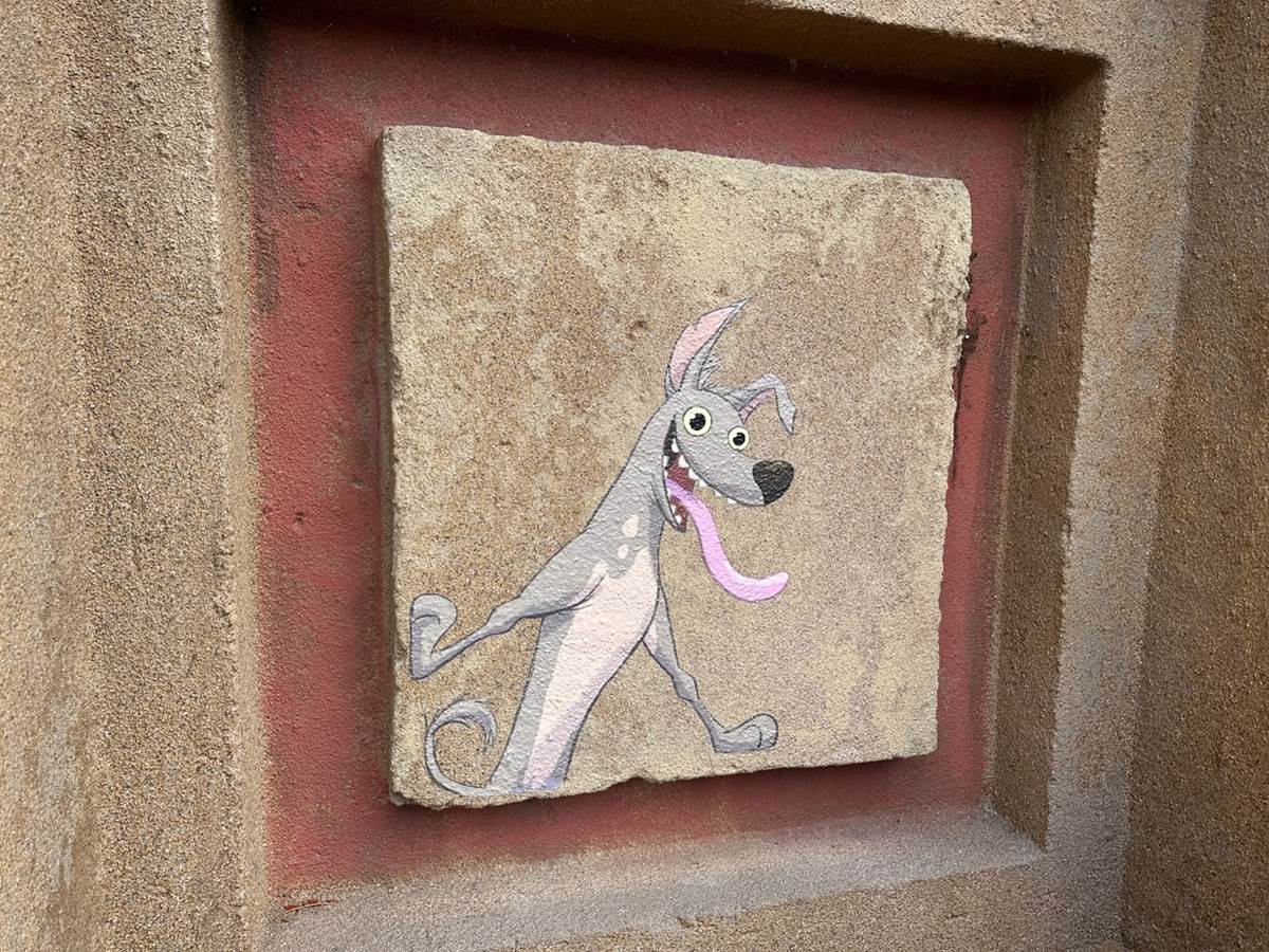 Two forms of Dante from Pixar’s Coco can be found outside of the Mexico pavilion. Dante is an alebrije who can travel between both the Land of the Dead and the human world, and here at the Festival of the Arts, he can be found in both of his forms.