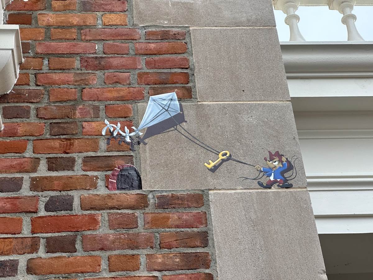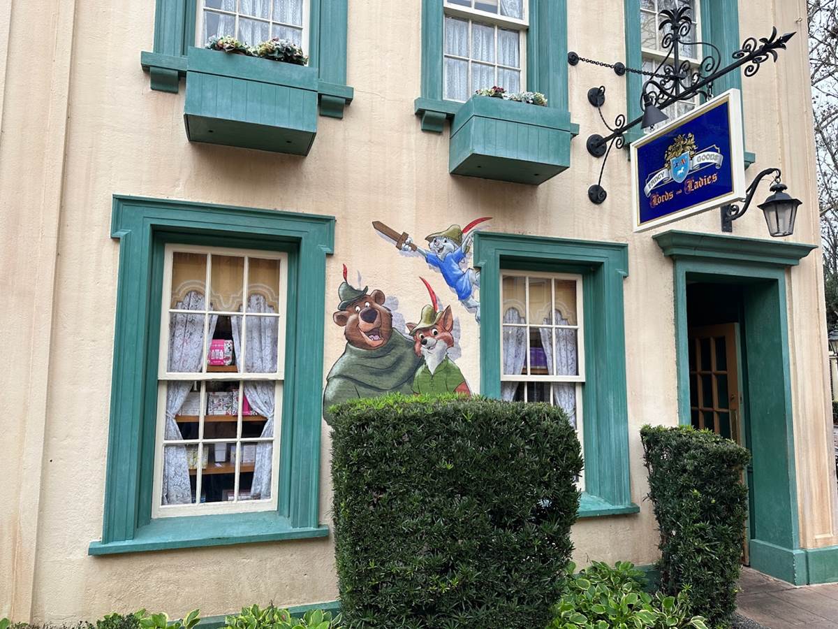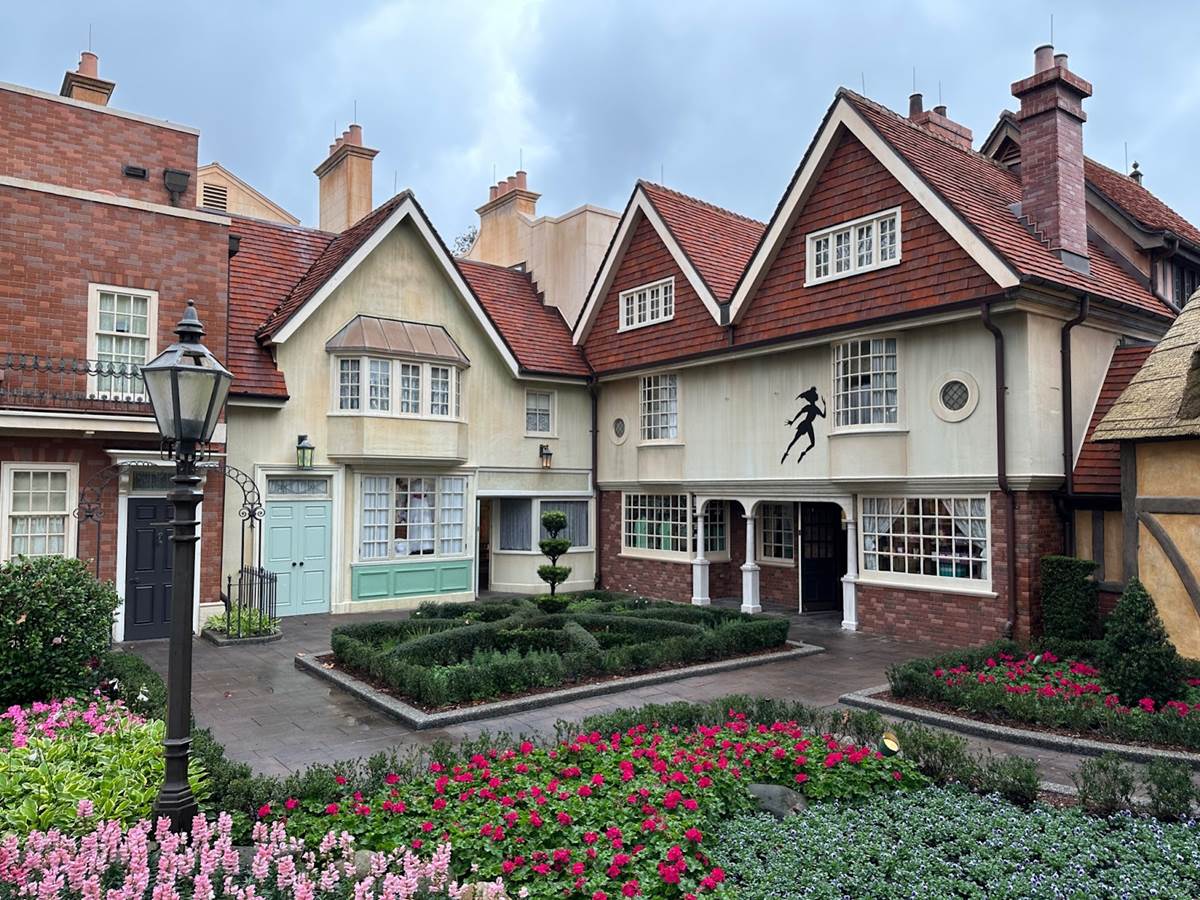 Across the street, Peter Pan’s shadow can be found approaching an upper level window, perhaps evading being found by Pan himself.