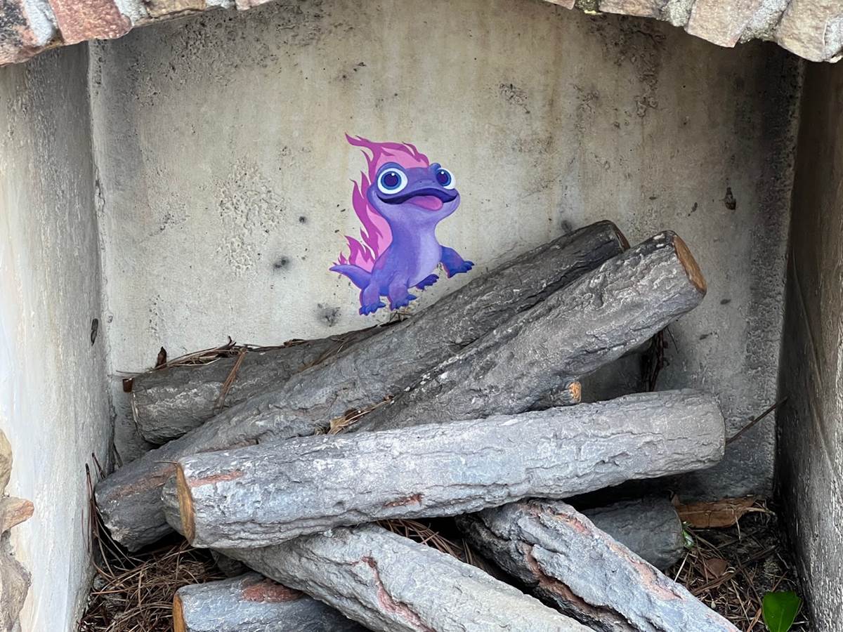 The adorable Bruni from Frozen 2 joins the festivities this year, appropriately resting on the fireplace near Kringla Bakeri Og Kafe.