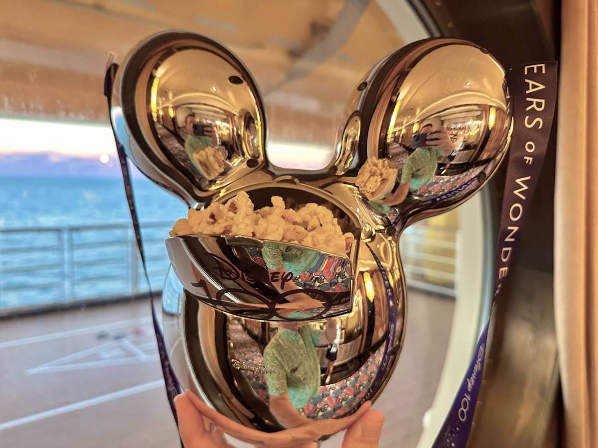 Guests aboard the Disney Fantasy today are enjoying the start of a Pixar Day at Sea cruise and we spotted this new Disney100 popcorn bucket available on the ship.