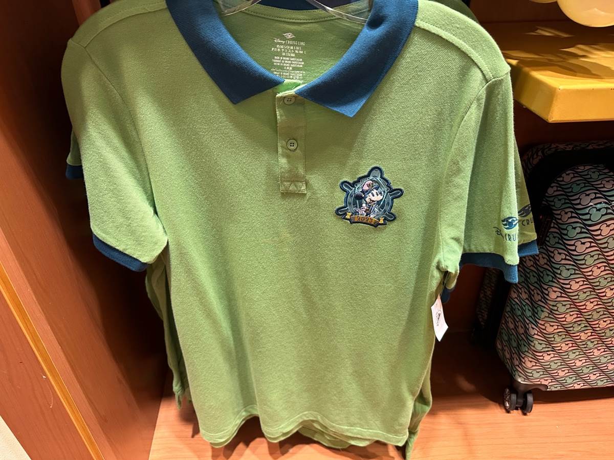 If polos are your thing, there’s this green with blue collar polo, featuring an image of Captain Mickey with 2023 in front. ($49.99)