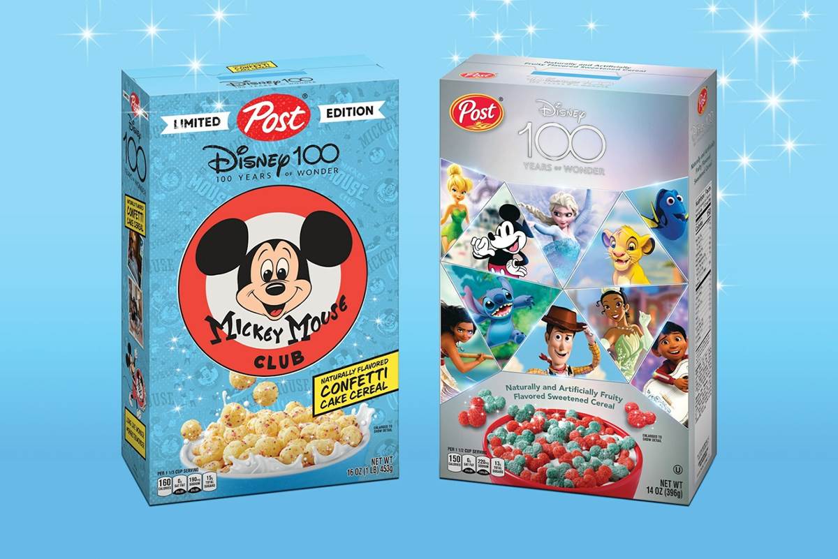 - To commemorate the 100th anniversary of The Walt Disney Company (Disney100), Post Consumer Brands is participating in the Disney 100 Years of Wonder celebration with the launch of multiple, limited-edition offerings. As a staple at the breakfast table, Post worked together with Disney to create a one-of-a-kind themed fruity cereal, a new-to-market confetti cake flavored cereal and a special edition collector's cereal item.