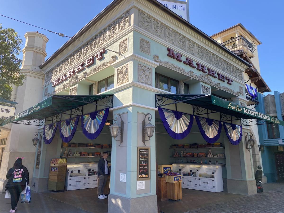 Guests will find more of the silver and purple platinum decor as they walk down Buena Vista Street, which has been adorned with medallions and bunting on light posts and storefronts throughout.