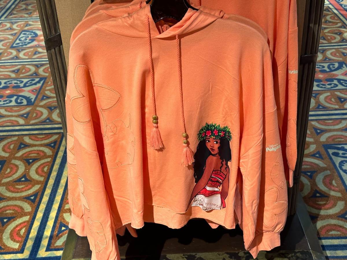 - The hoodie not only features Moana herself, but also the logo for Disney’s Polynesian Village Resort.