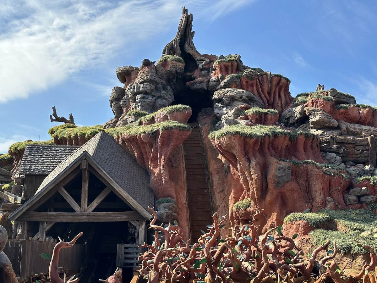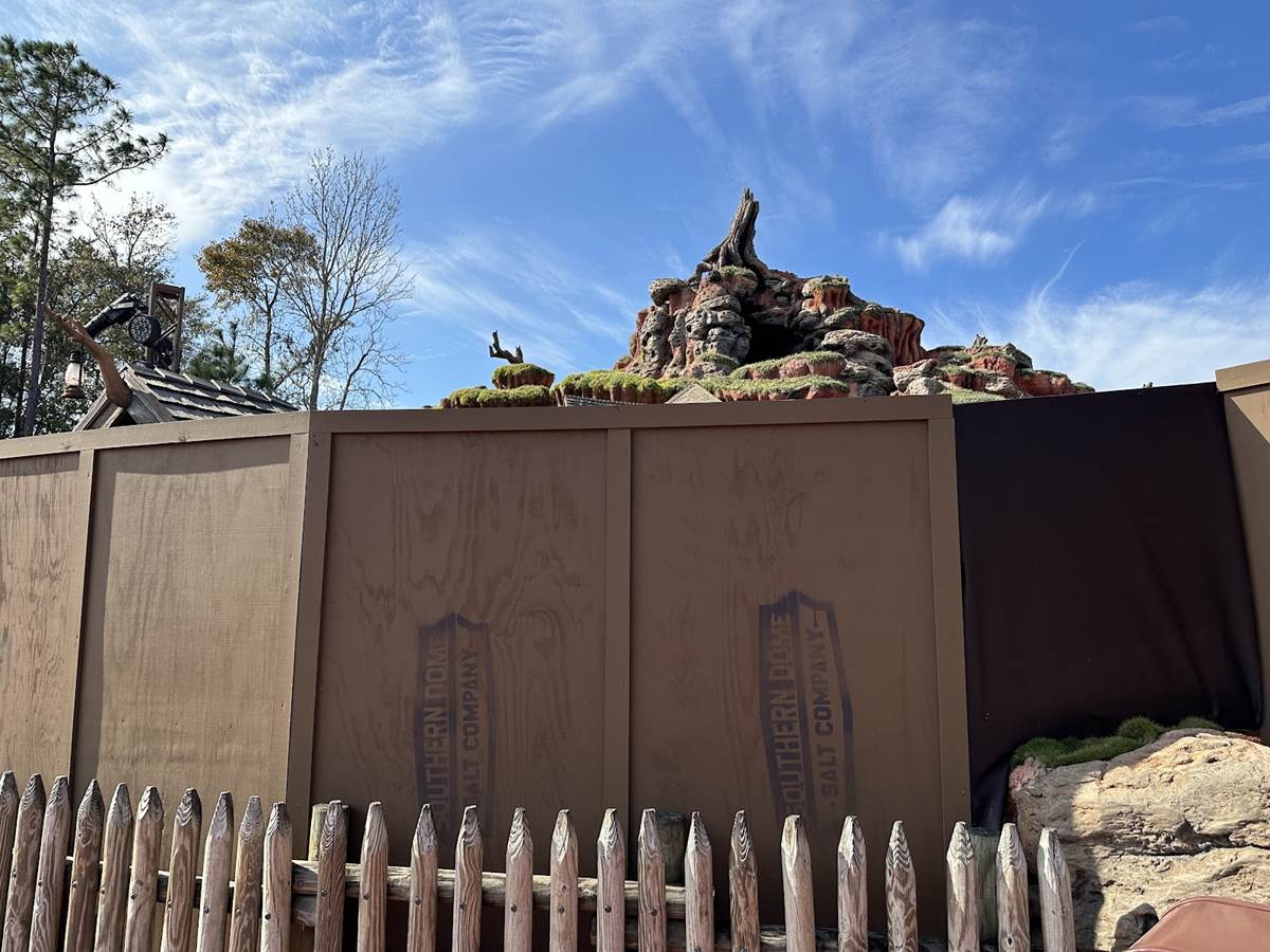 - Around the mountain proper, construction walls have already been built around the exterior of the attraction, blocking the work that is already underway from view. The entire outdoor queue that was once home to singing and chirping birdhouses is also already walled up.