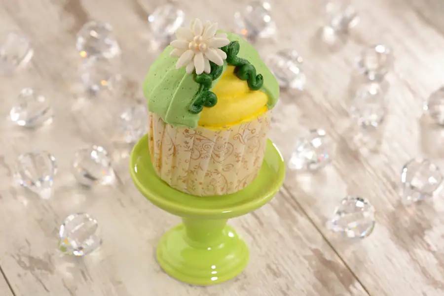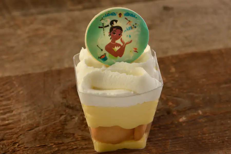 - Tiana Praline Cupcake: Vanilla cupcake filled with pecan praline filling, vanilla buttercream, and chocolate décor (New)