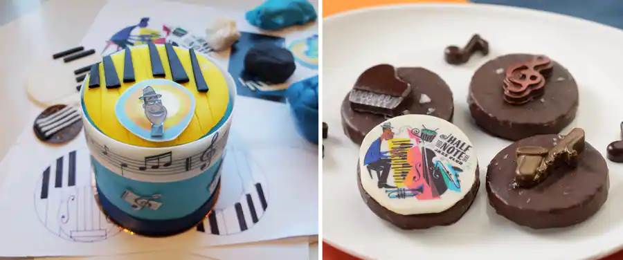 - Soul Cupcake: Vanilla cake with bananas foster filling, vanilla marshmallow buttercream, Joe Gardner white chocolate medallion, edible paper music notes, and multi color crispy pearls