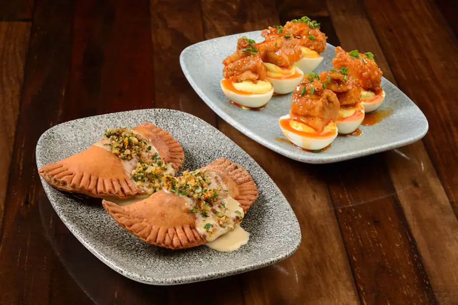 - Chicken on the Egg: Buttermilk fried chicken, deviled eggs, and hot honey sauce