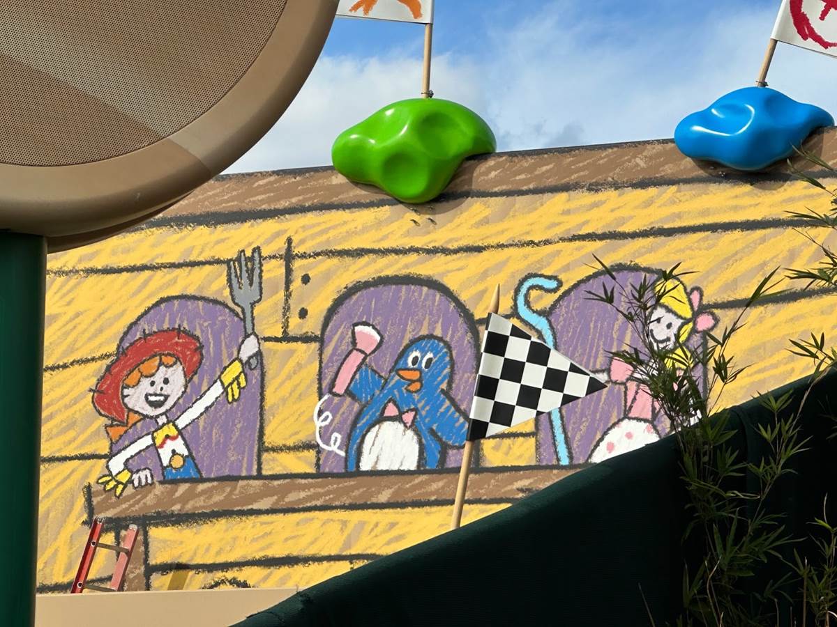 - The facade of the building has started to look more like the finished product, with very stylized “children’s drawings" of Jessie, Wheezy and Bo Peep visible.