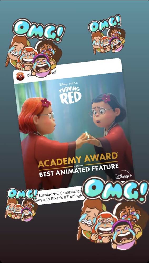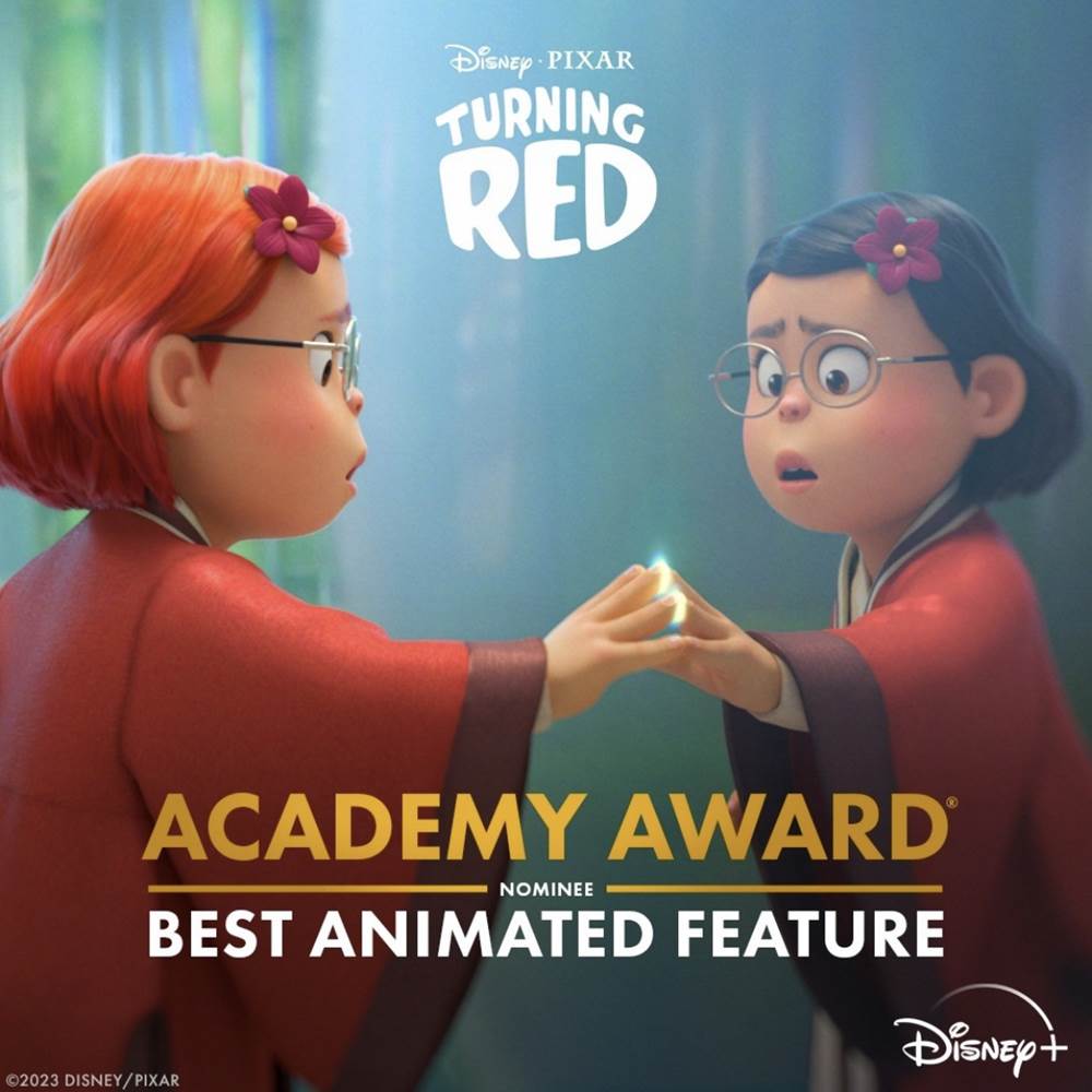 Pixar Animation Studios is celebrating their now Oscar nominated feature, Turning Red, on their social media accounts.