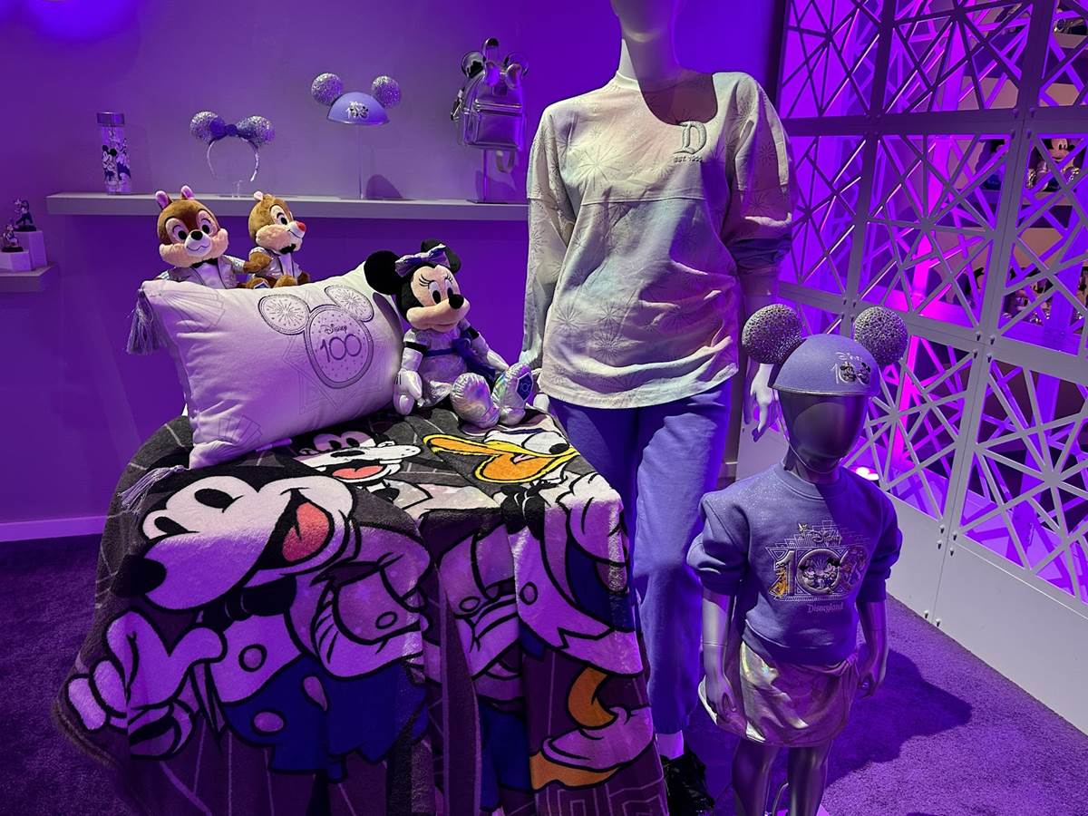 More traditional fare is also offered, some of which is already available, including plush characters in their Disney100 outfits, as well as celebratory throw blankets and decorative pillows.