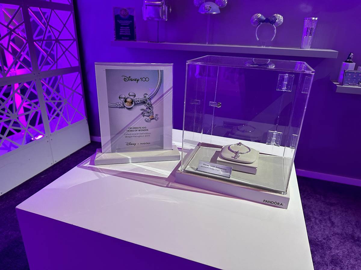A special Disney 100th anniversary Pandora bracelet and charm are set to be offered, and more traditional wares like specialty mouse ears and headbands will be available as well.