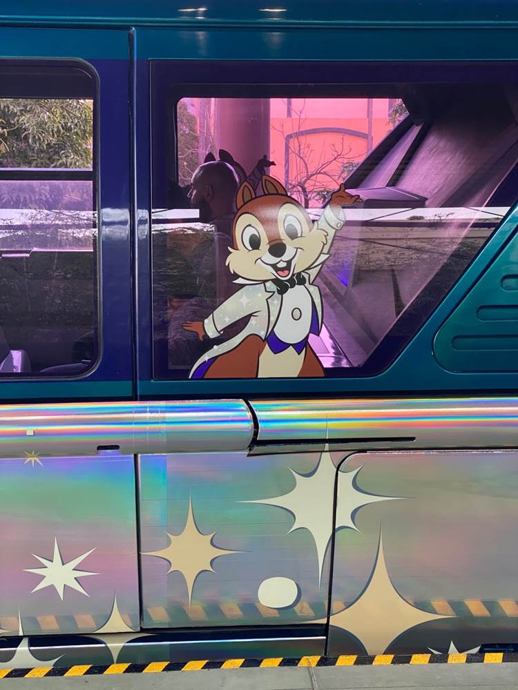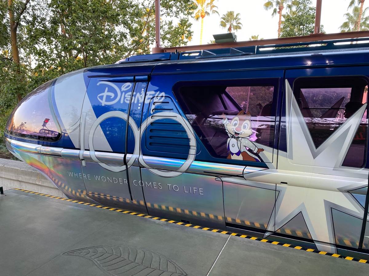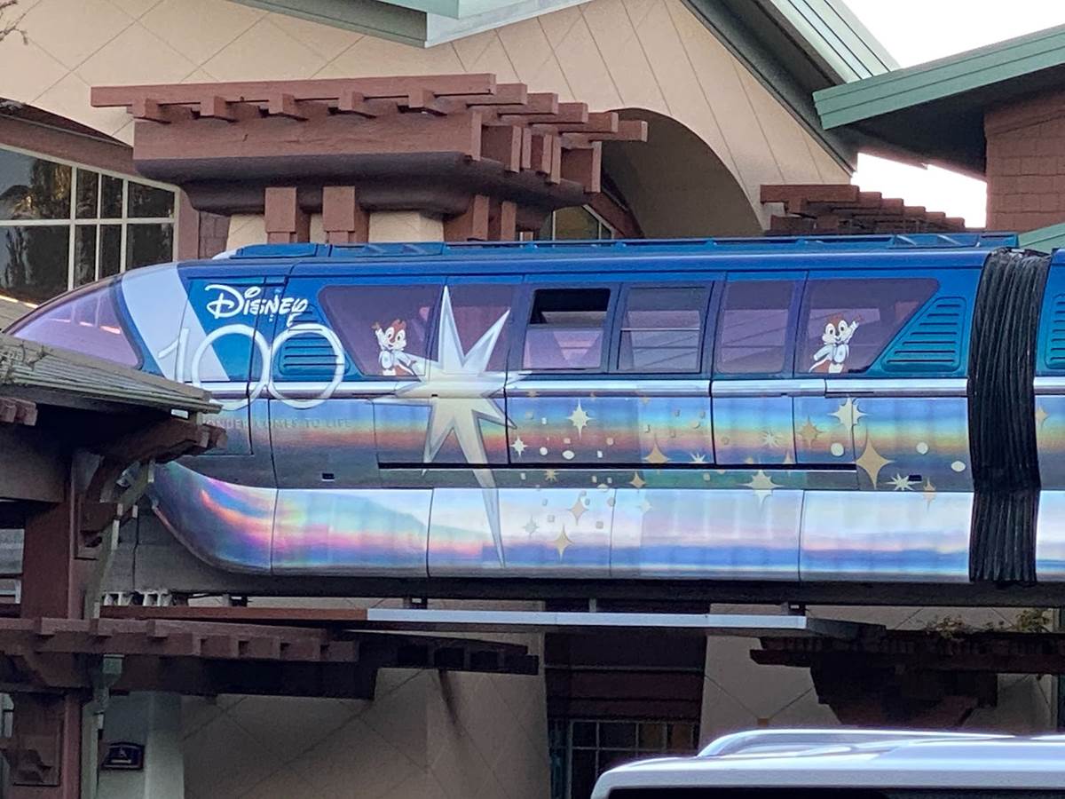 - From what we could see with our first glimpse of the new monorail wrap, Chip and Dale appear next to the Disney100 logo.
