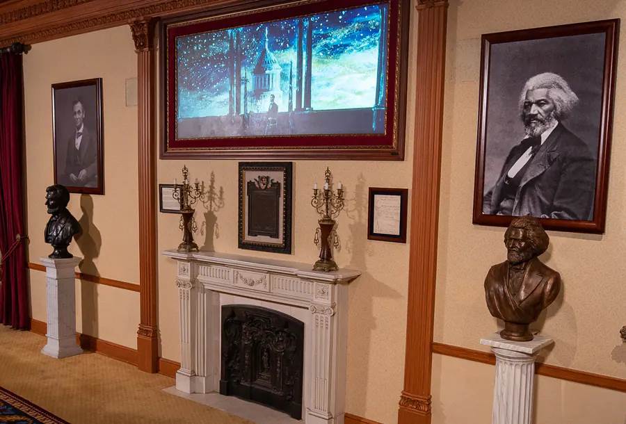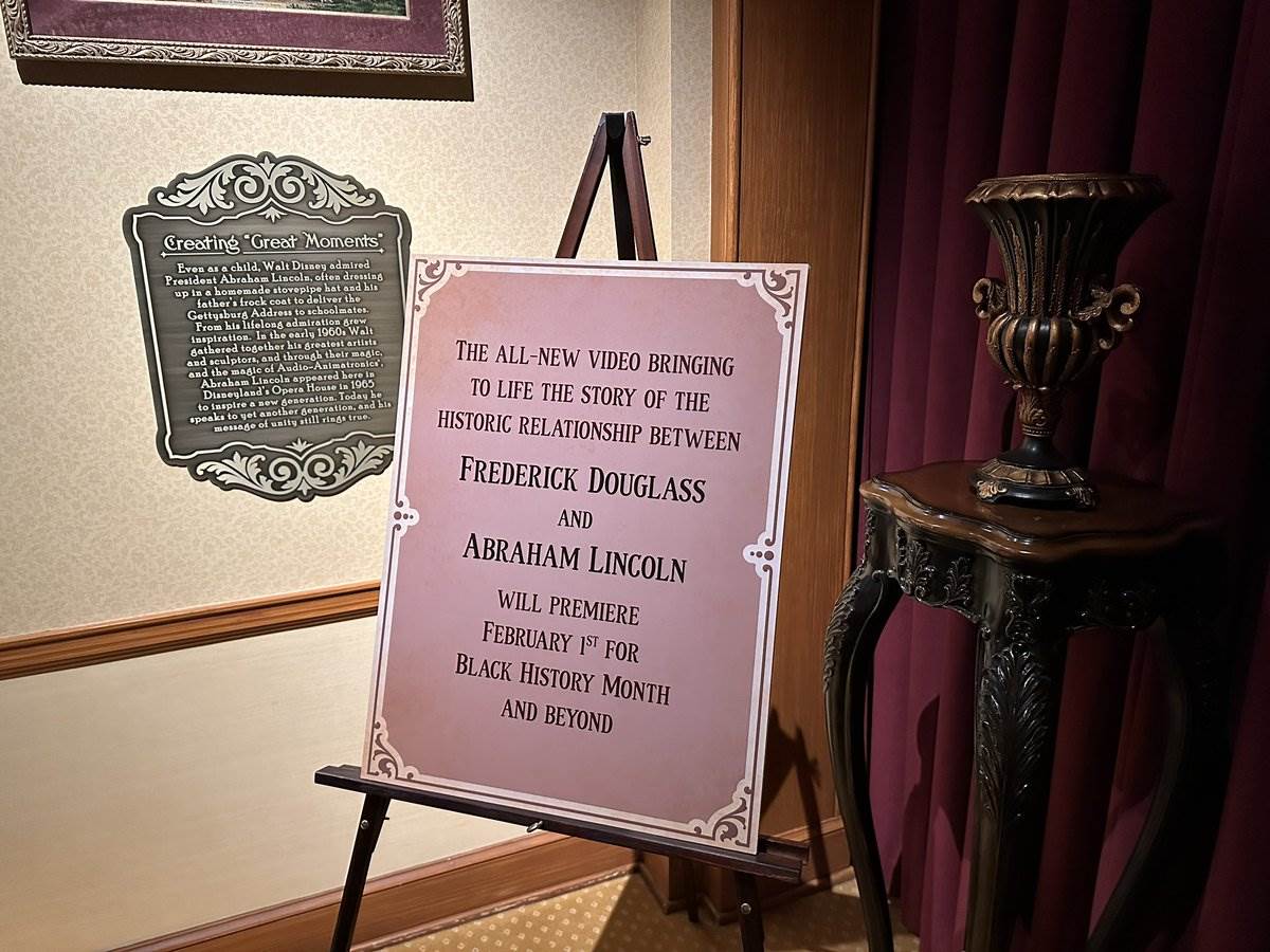 - A new video, produced in collaboration with National Geographic, will debut in the lobby of the Main Street Opera House at Disneyland, outside of Great Moments with Mr. Lincoln, bringing to life the story of the historic relationship between Frederick Douglass and Abraham Lincoln.