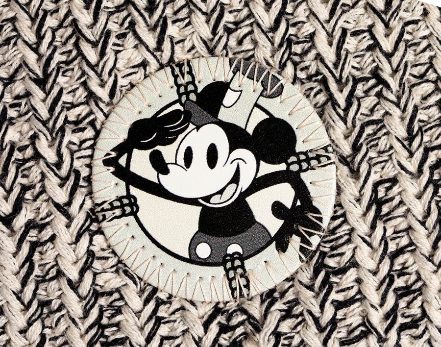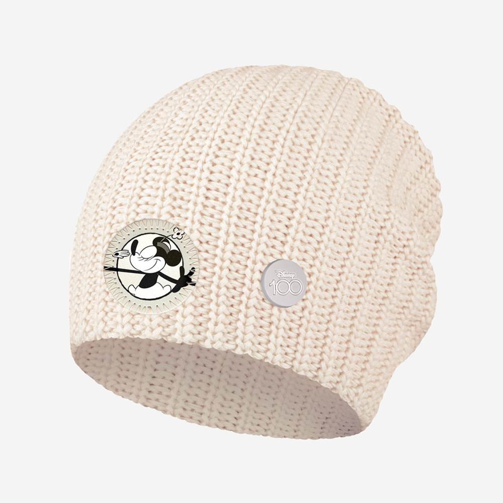 - Each beanie features a circular leather patch with a white foil Mickey or Minnie cartoon and includes a commemorative 100th Anniversary beanie charm.