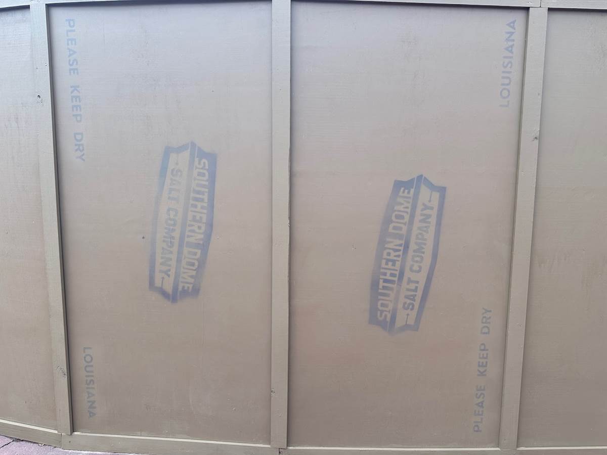 The construction walls feature a Southern Dome Salt Company logo, and also say “Louisiana" and “Please Keep Dry." This refers to the new theme for Tiana’s Bayou Adventure, which will transform the mountain into a salt dome, as there are no mountains in Louisiana. Tiana has purchased one of these salt domes and is using it as the base for Tiana’s Foods, a key component to the story of the new attraction.
