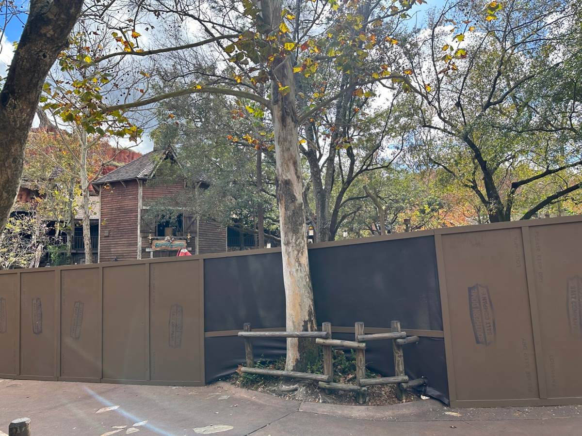Photos: Laughin’ Place References Removed, Construction Walls Expand at Former Splash Mountain
