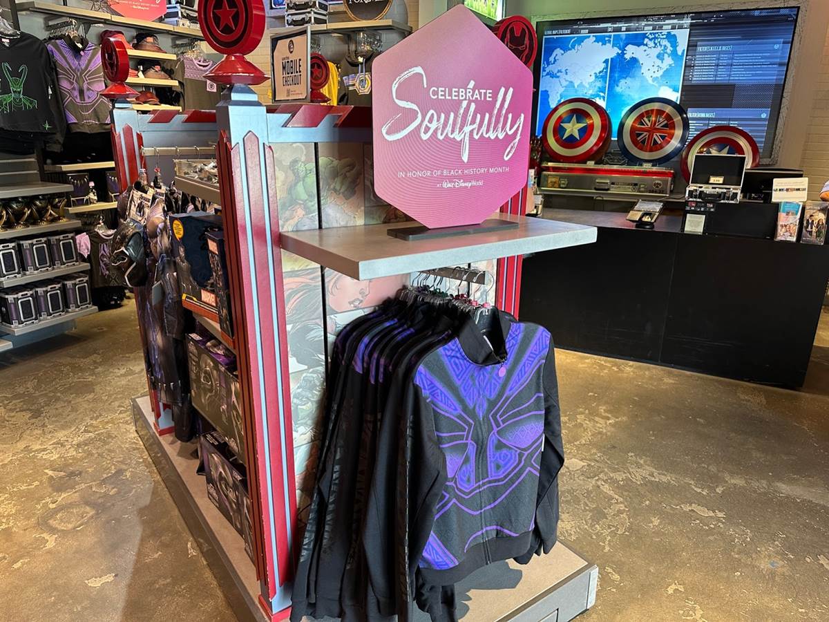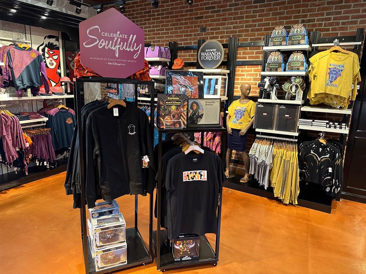 At both the Marvel Super Hero Headquarters and Marketplace Co-Op, Black Panther: Wakanda Forever merchandise is marked as part of the celebration.