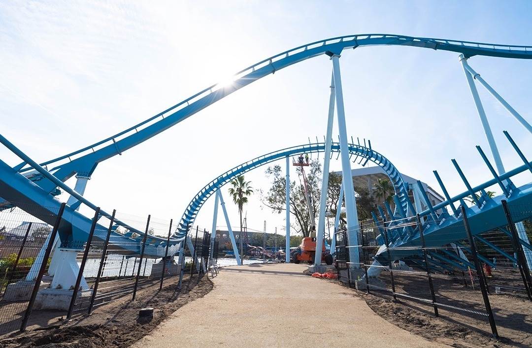 SeaWorld Orlando has shared a new photo from the construction site of their new coaster, Pipeline: The Surf Coaster, set to open this spring.