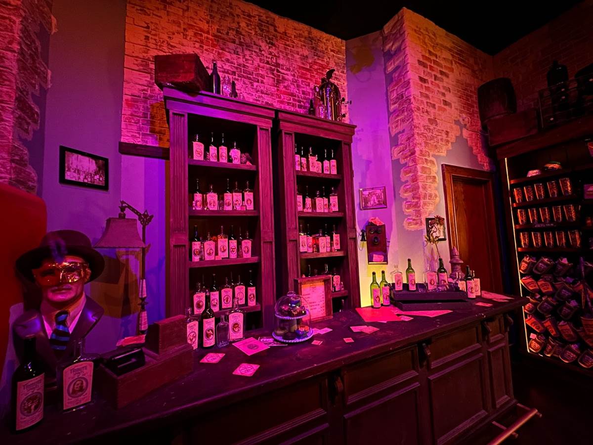 Things get a little darker in the next room as we pass through the traditional alleyways of New Orleans on our way into a speakeasy.