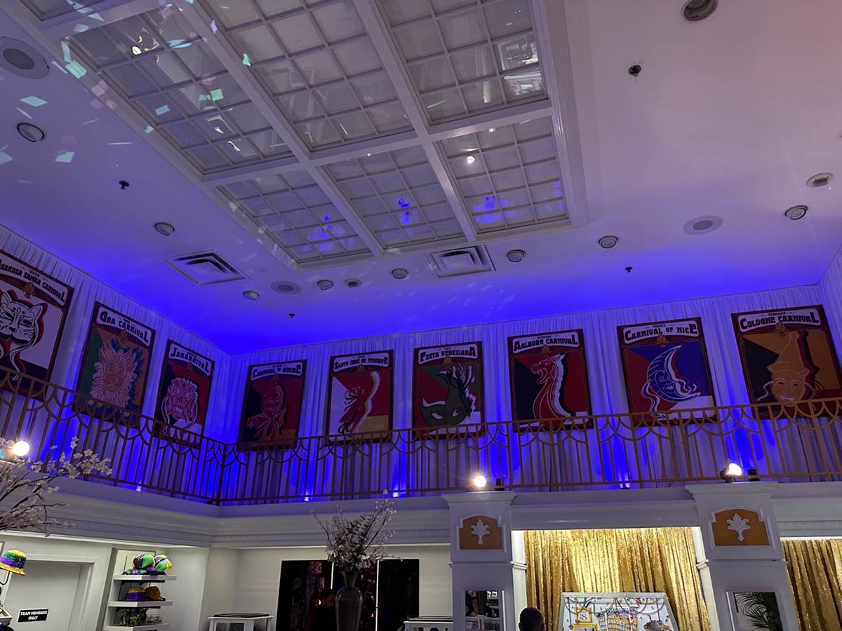 The first room, the former UOAP Lounge, is themed as the Ambassador Ballroom, with a giant bandstand centerpiece.