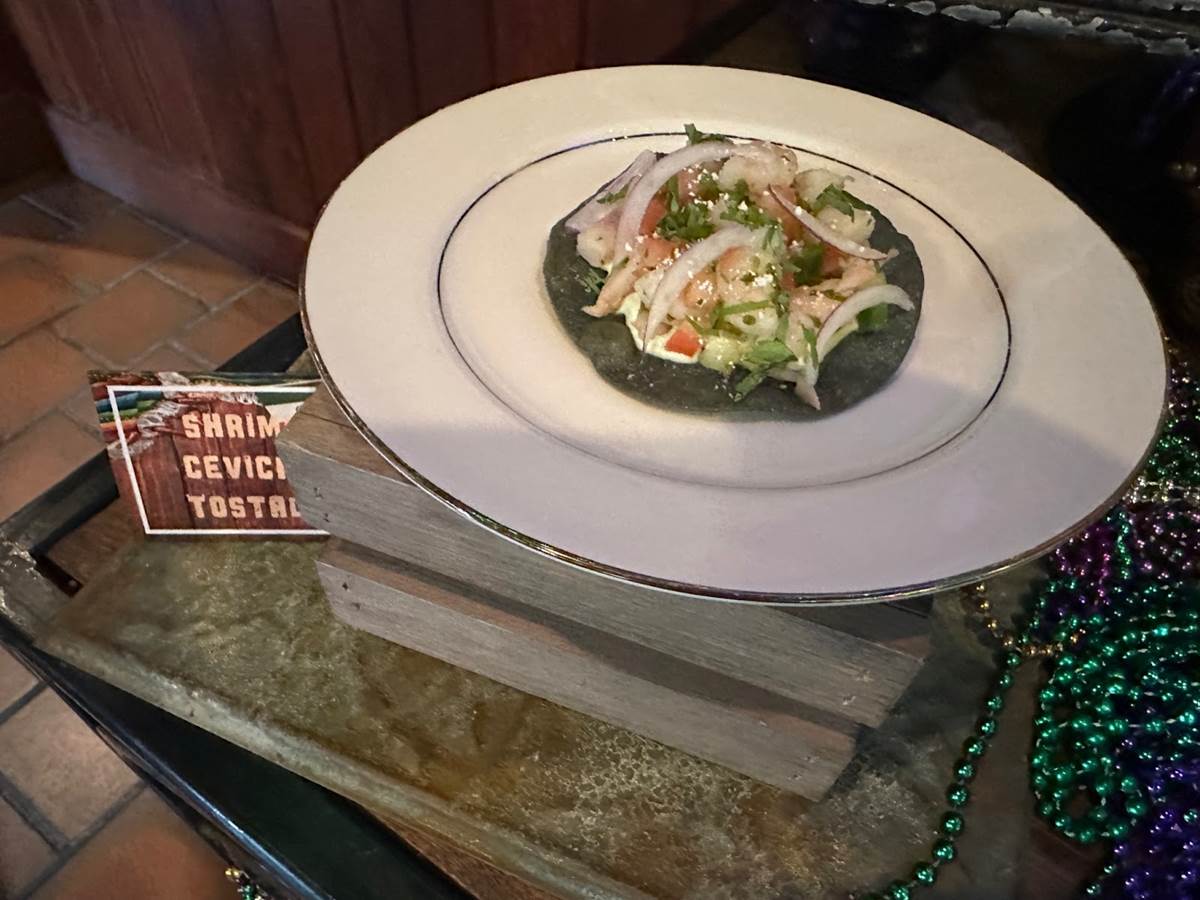 Items from around the world can be sampled during Universal’s Mardi Gras: International Flavors of Carnaval. Some of the international items on display for us included a Shrimp Ceviche Tostada, Mofongo, and Okonomiyaki.