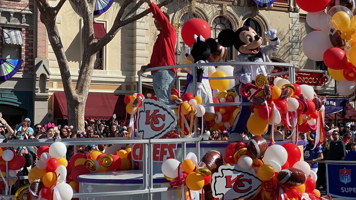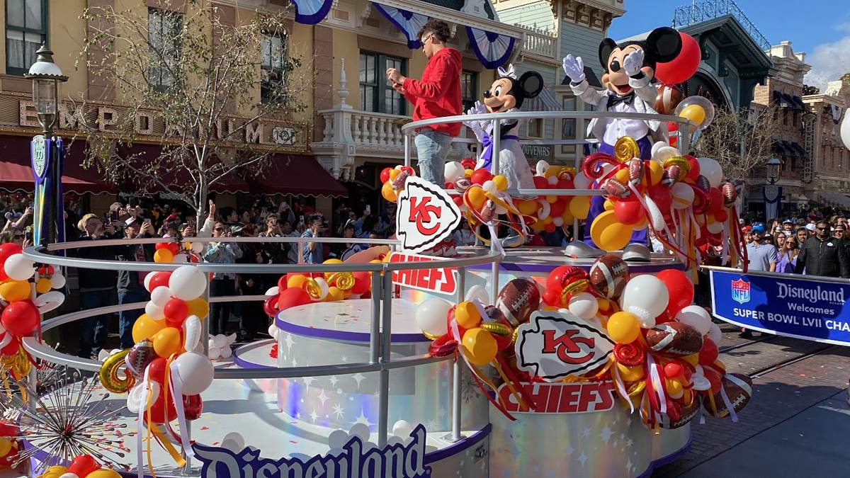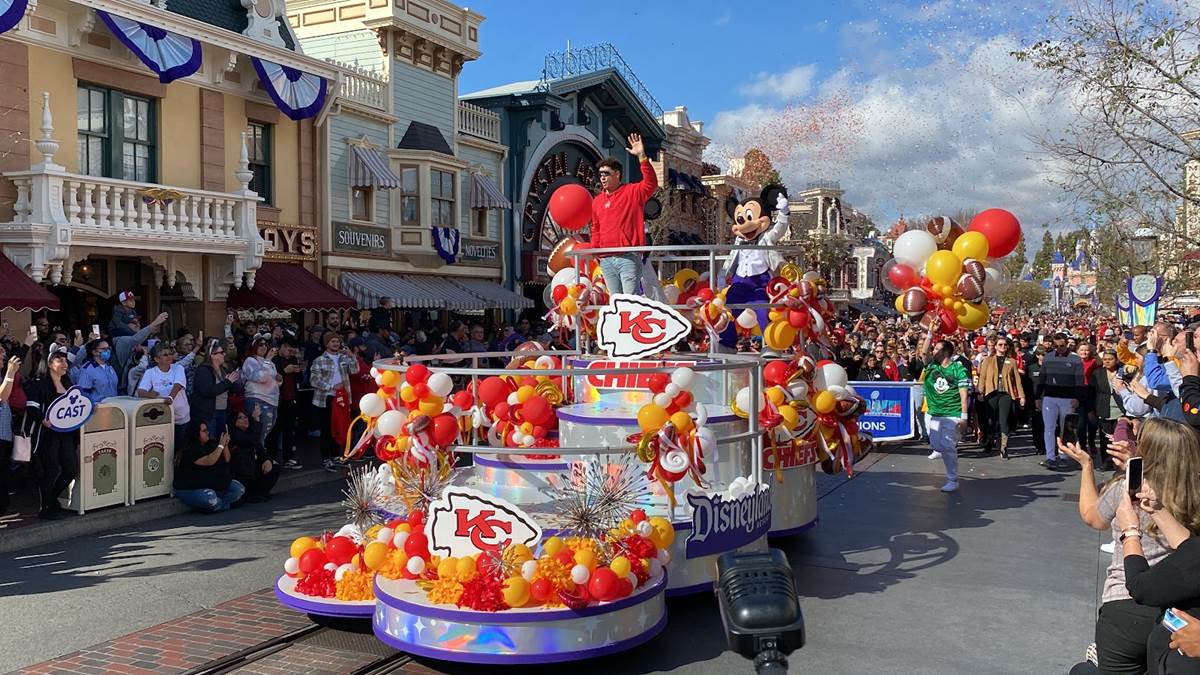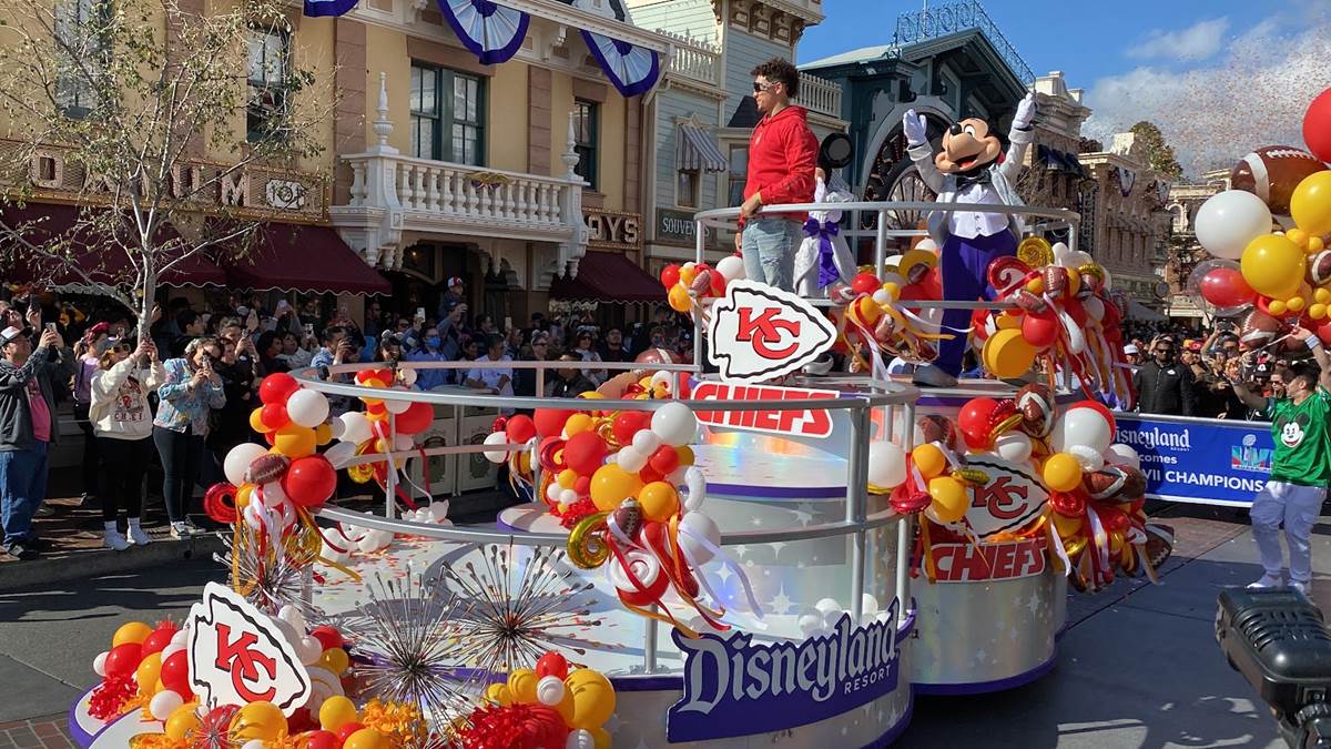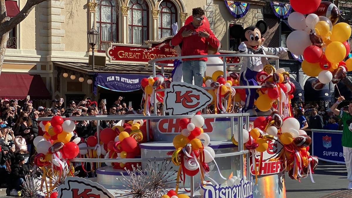 Earlier today, Feb. 13, 2023, the Super Bowl celebration went to the next level when Super Bowl MVP Patrick Mahomes starred in a colorful and high-energy cavalcade through Disneyland park in California. Guests in Disneyland park were able to watch the celebratory cavalcade as they traveled past Sleeping Beauty Castle and down Main Street, U.S.A.