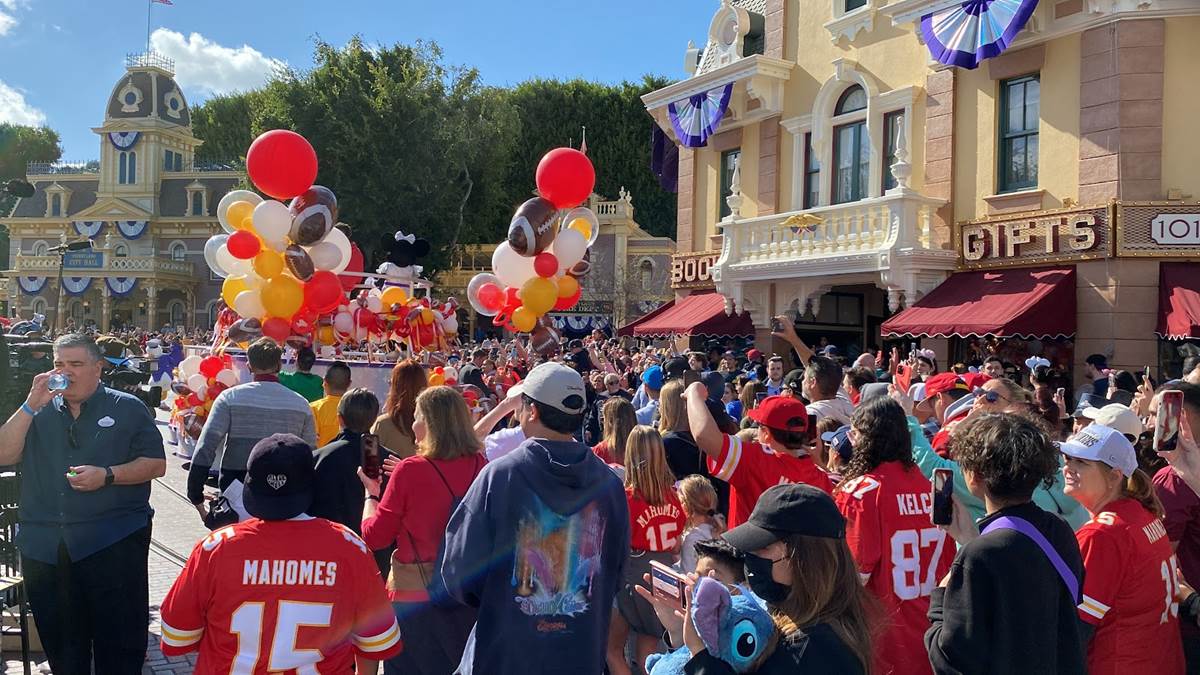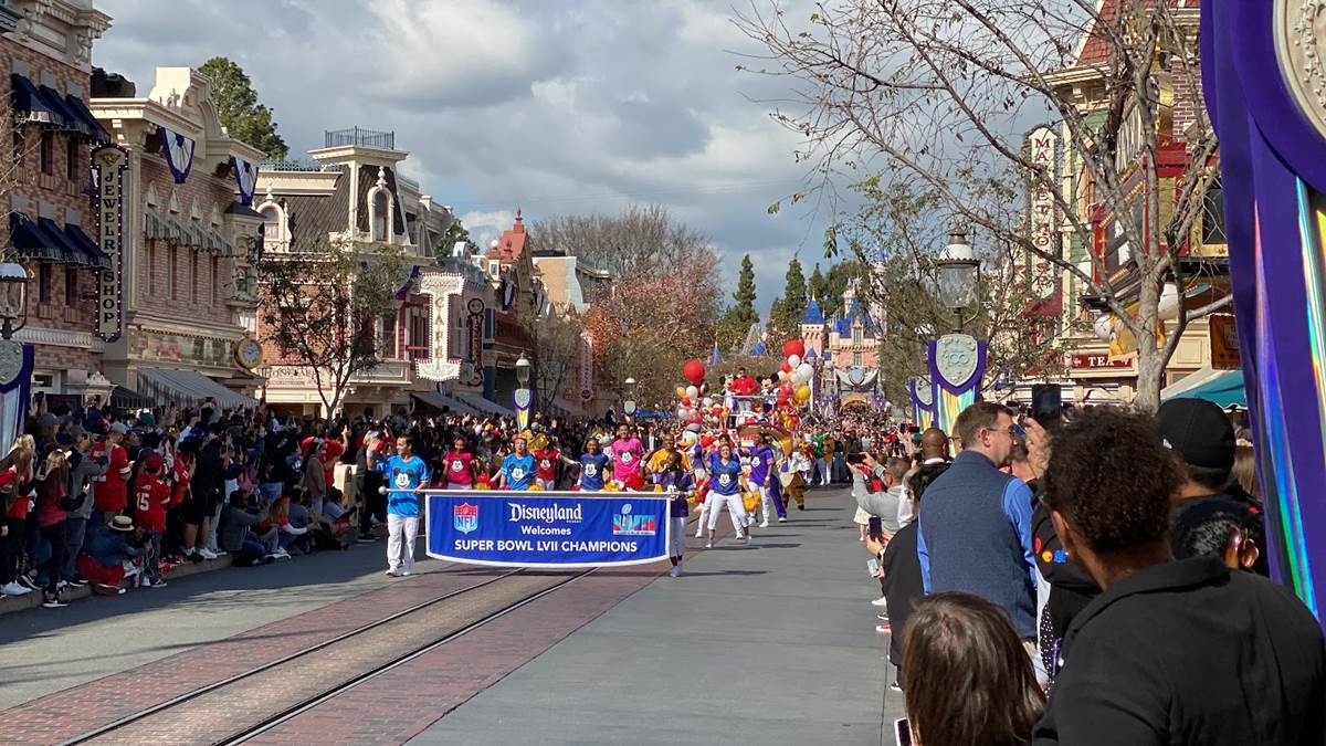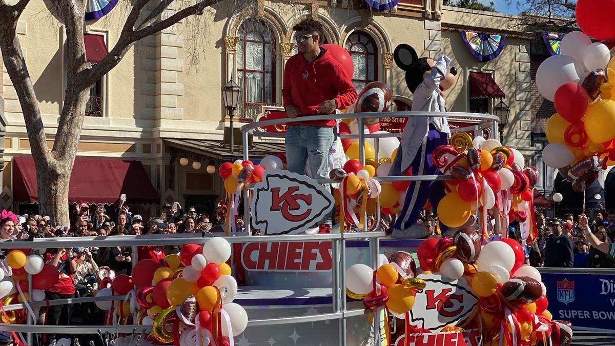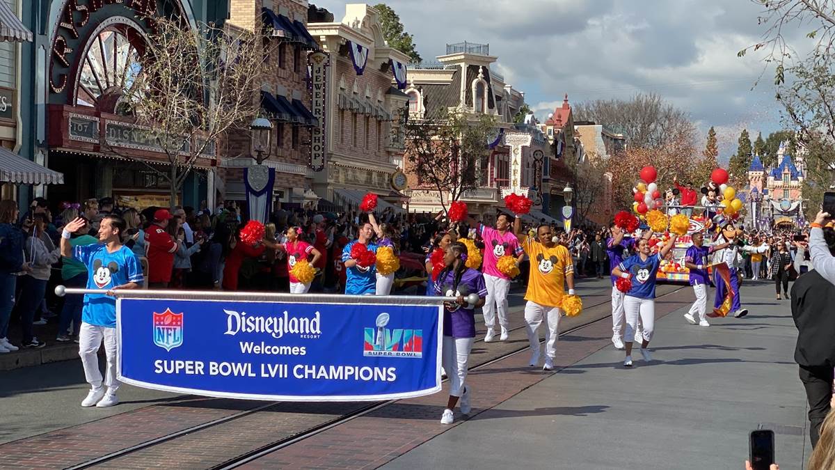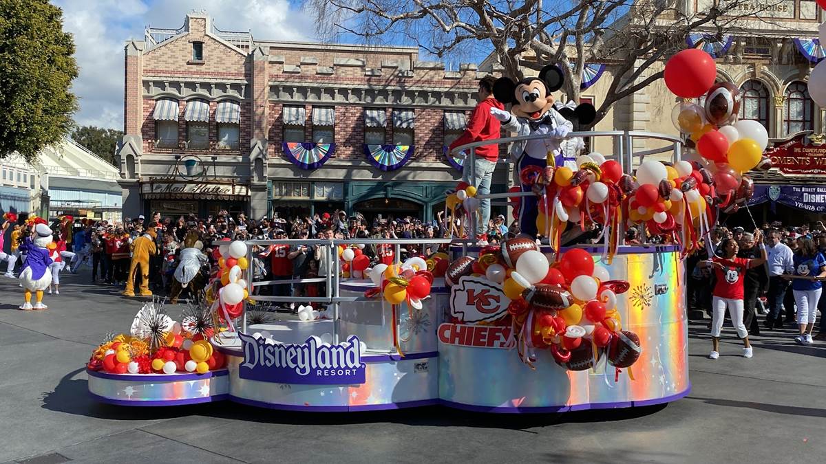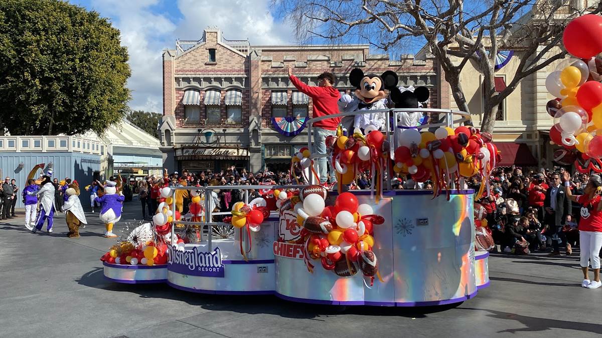 Earlier today, Feb. 13, 2023, the Super Bowl celebration went to the next level when Super Bowl MVP Patrick Mahomes starred in a colorful and high-energy cavalcade through Disneyland park in California. Guests in Disneyland park were able to watch the celebratory cavalcade as they traveled past Sleeping Beauty Castle and down Main Street, U.S.A.