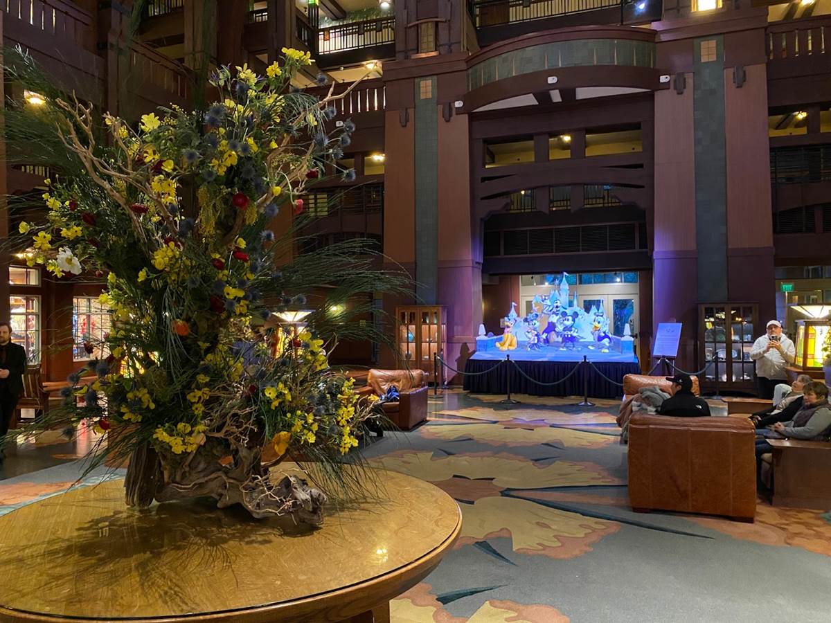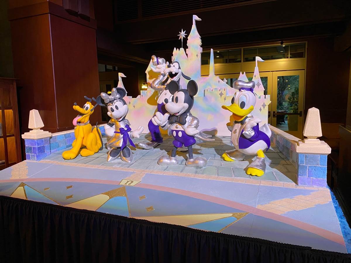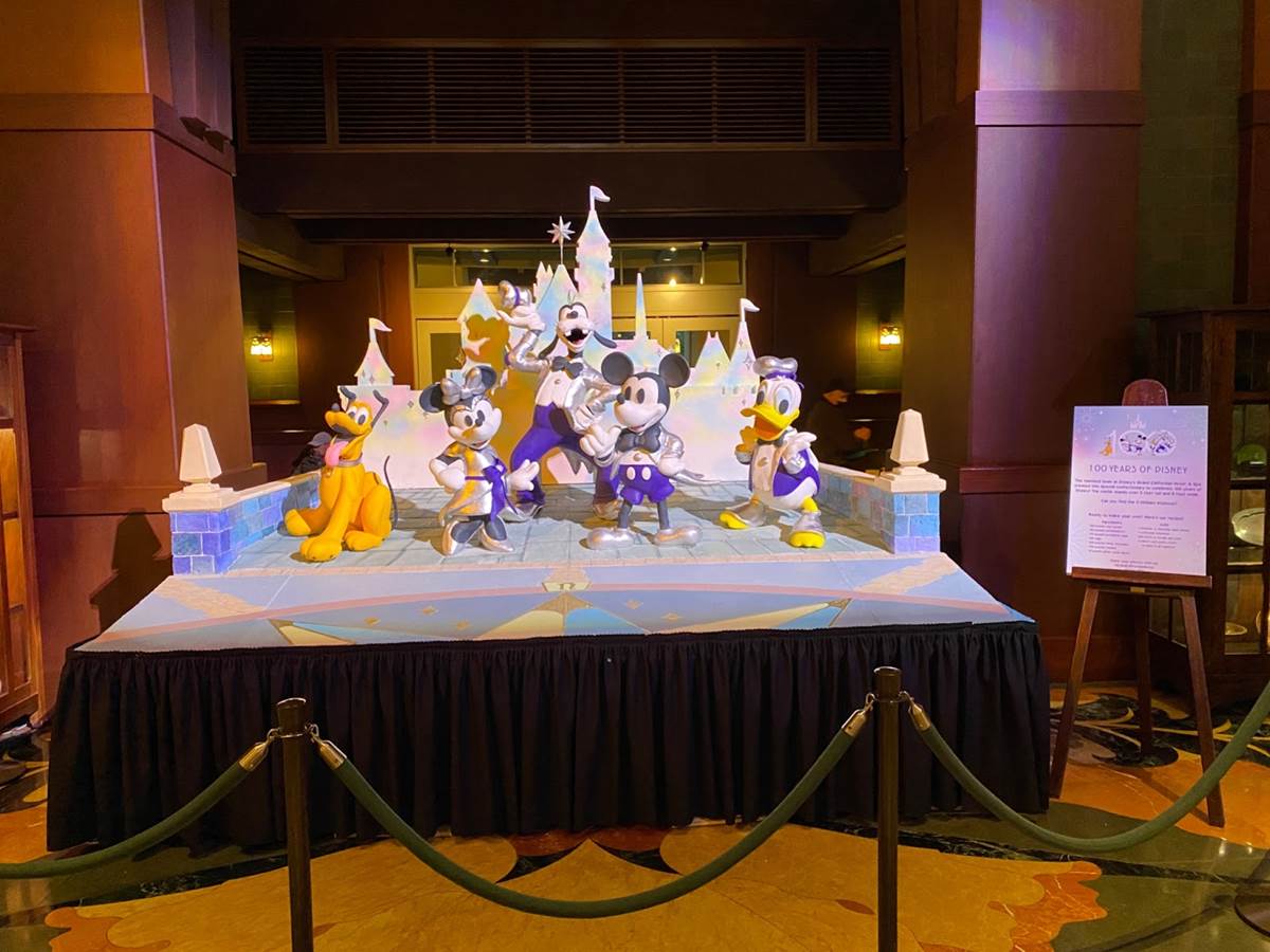 A delightful new display featuring Mickey and friends celebrating Disney100 has been installed in the lobby of Disney’s Grand Californian Hotel & Spa at the Disneyland Resort.