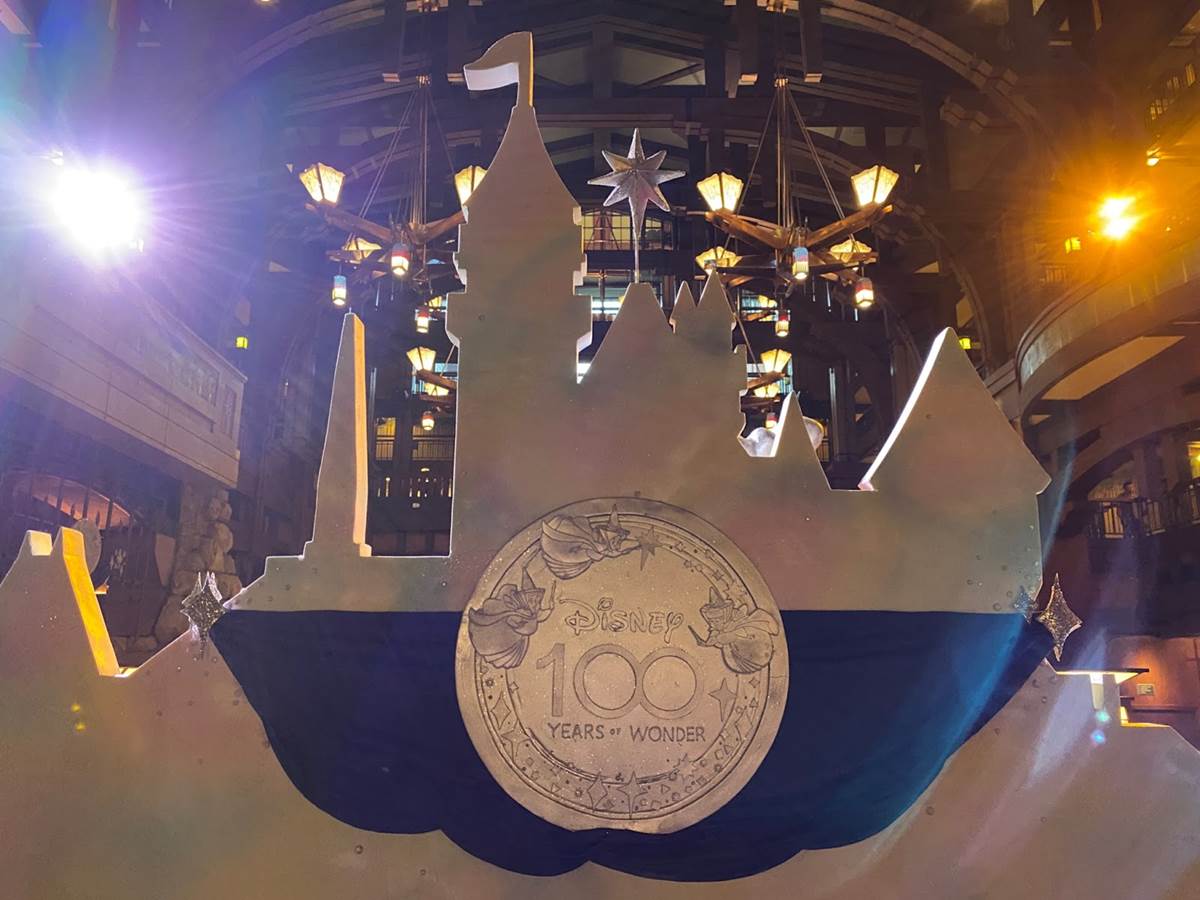 On the back of the Castle is a Disney100 medallion, similar to others found throughout the Disneyland Resort.