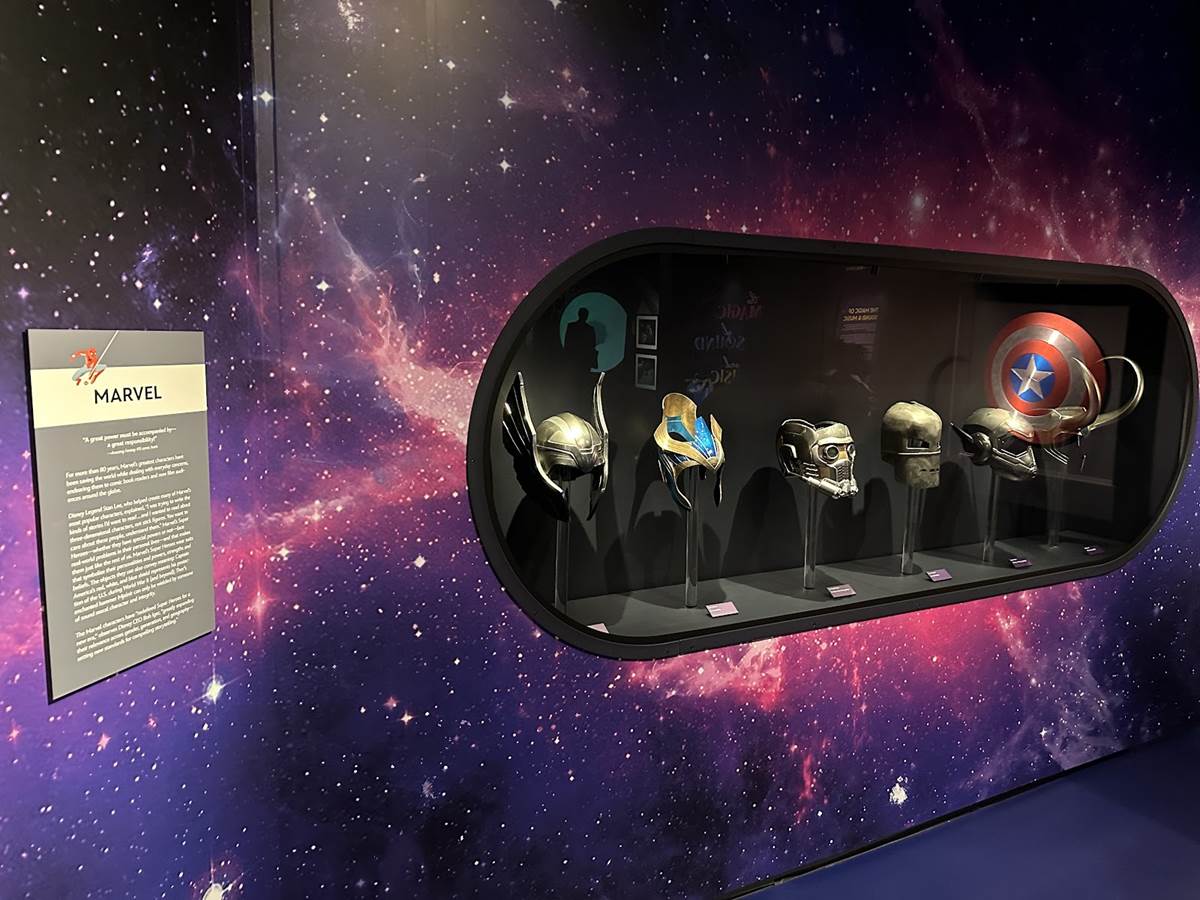 Disney100: The Exhibition invites guests to step into their favorite Disney stories across ten galleries throughout a 15,000-square-foot exhibit space featuring innovative and immersive technology. The Walt Disney Archives spent the past five years curating a collection of more than 250 rarely seen original artworks, artifacts, costumes, props, and other memorabilia for the exhibition celebrating 100 years of The Walt Disney Company. The vast majority of objects are from the Walt Disney Archives, with a selection of artwork from the Walt Disney Animation Research Library, Walt Disney Imagineering Art Library, and Pixar Living Archives, as well as props and costumes on loan from Marvel Studios.