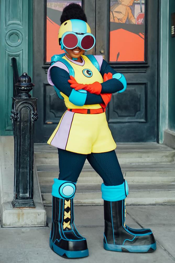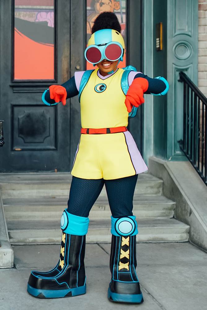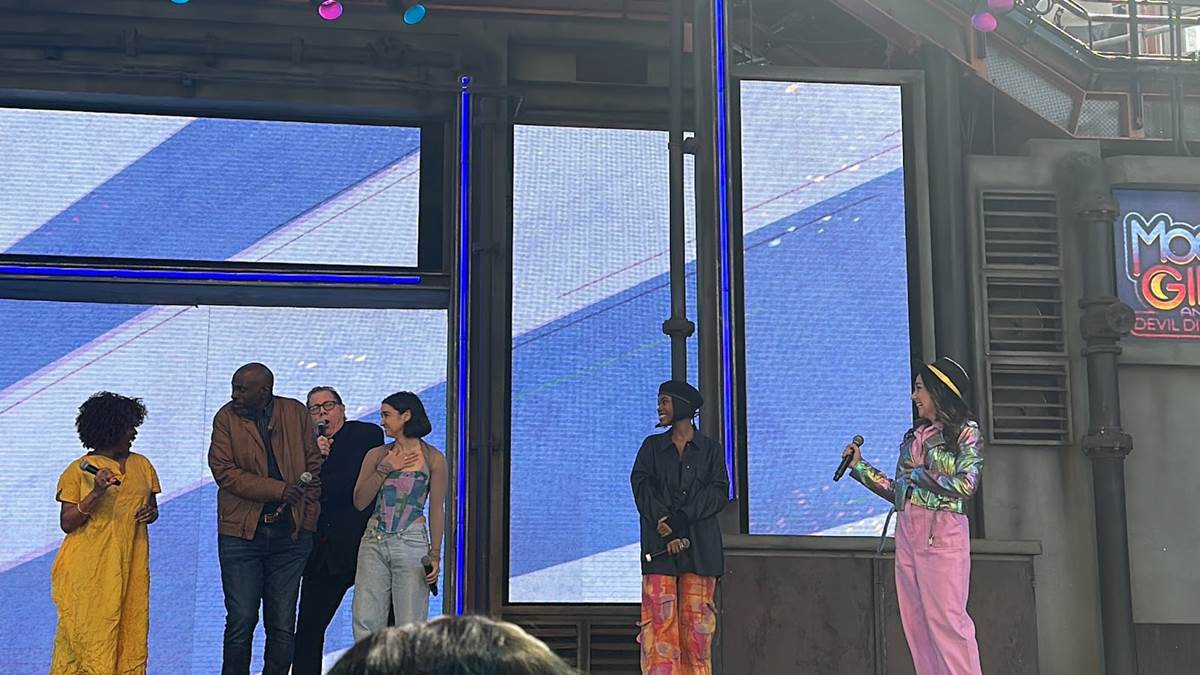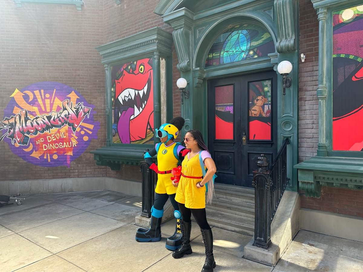 Moon Girl, from the new series, Marvel’s Moon Girl and Devil Dinosaur, has arrived at Disney California Adventure for a limited time, starting today in Hollywood Land at the park. After a cavalcade down Hollywood Blvd., Moon Girl was introduced on stage in the Hollywood Backlot, alongside some of the cast of the series.
