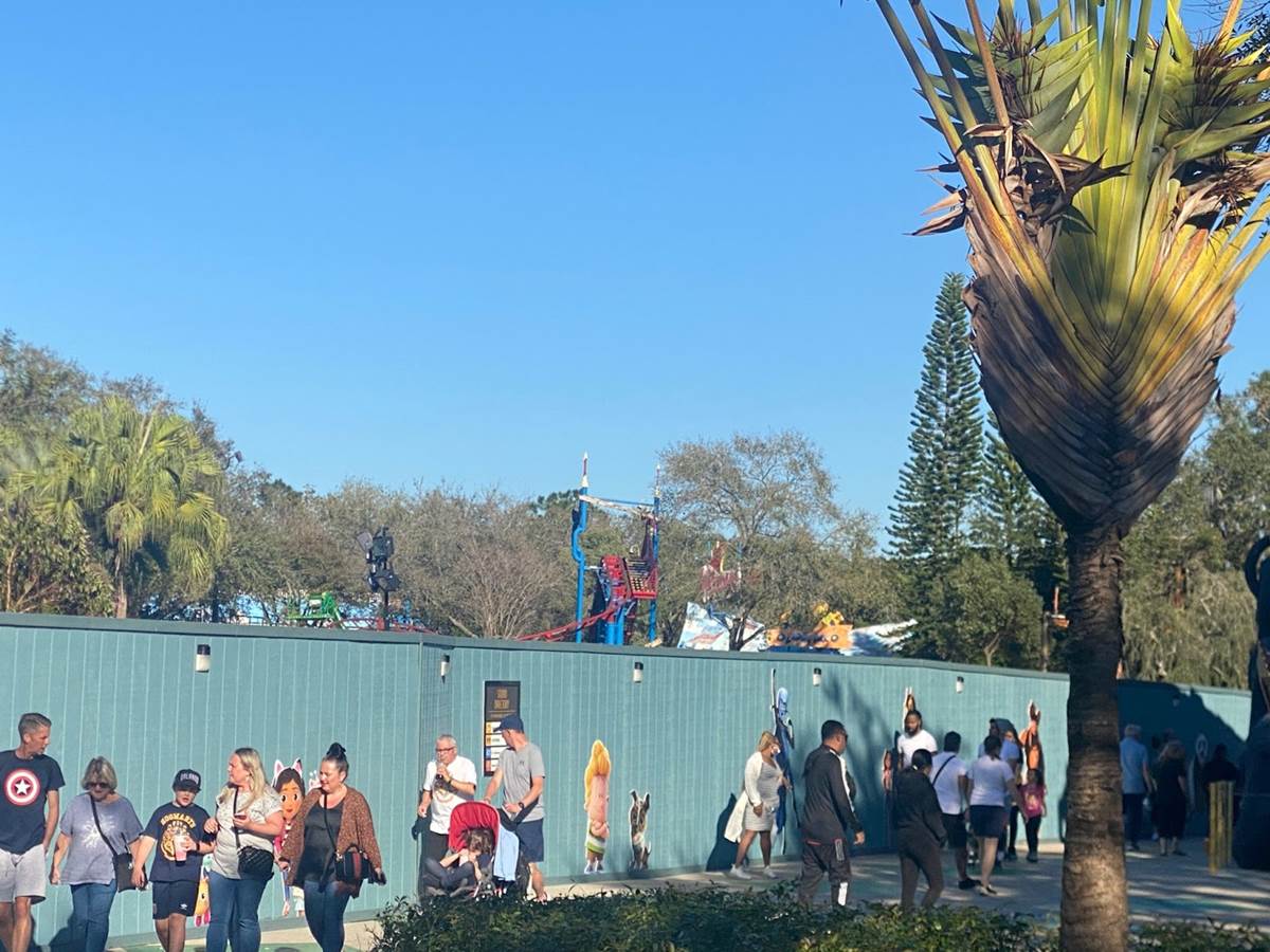 Construction walls are up all the way from “Animal Actors on Location!" to the E.T. Adventure, both of which are remaining at the park. Looking towards the right of the image, you can see where the former structures of Fievel’s Playland stood.