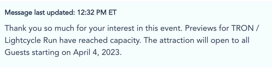 The link is now live for the passholder preview registration for TRON Lightcycle / Run.