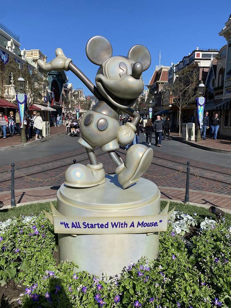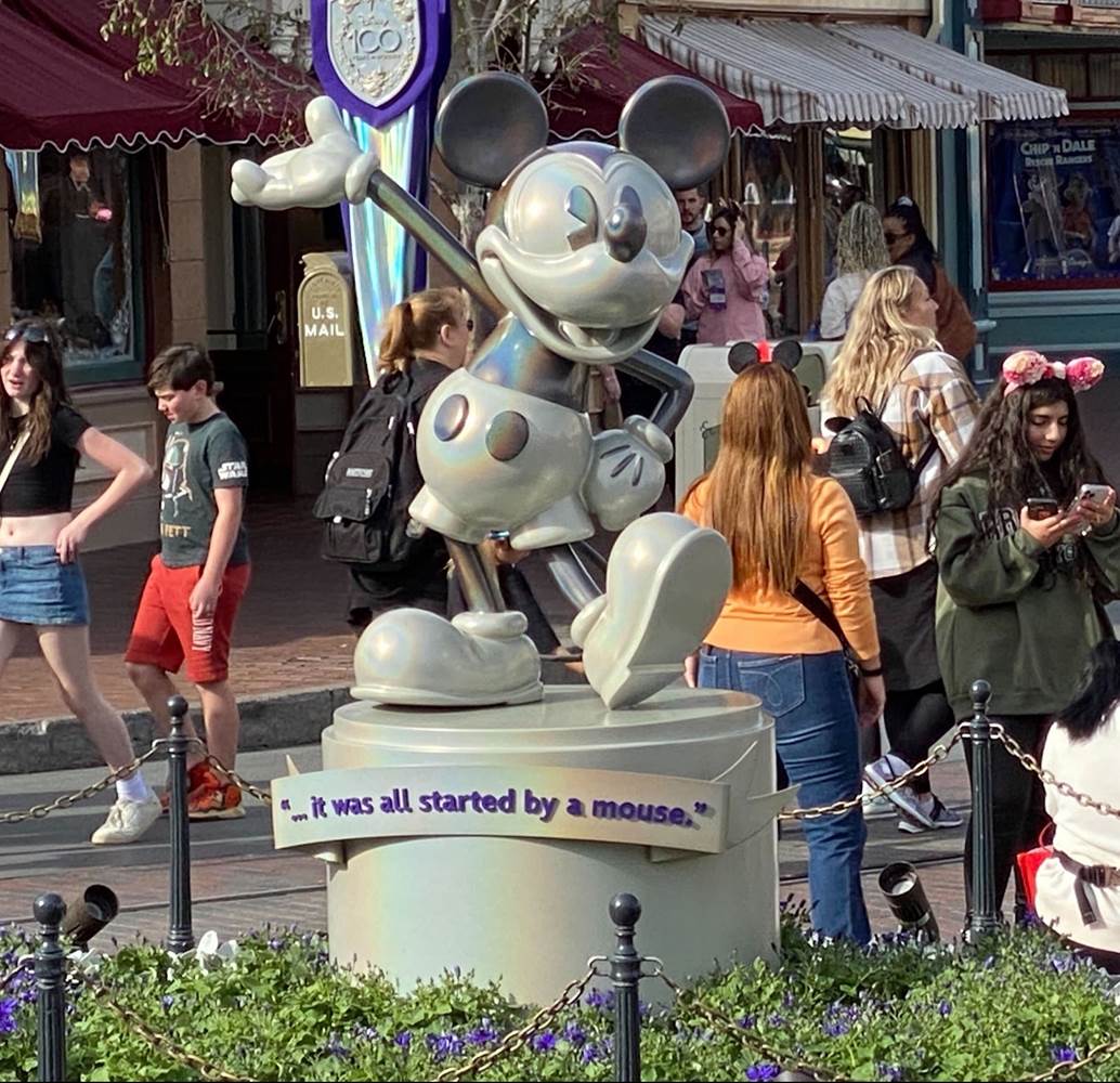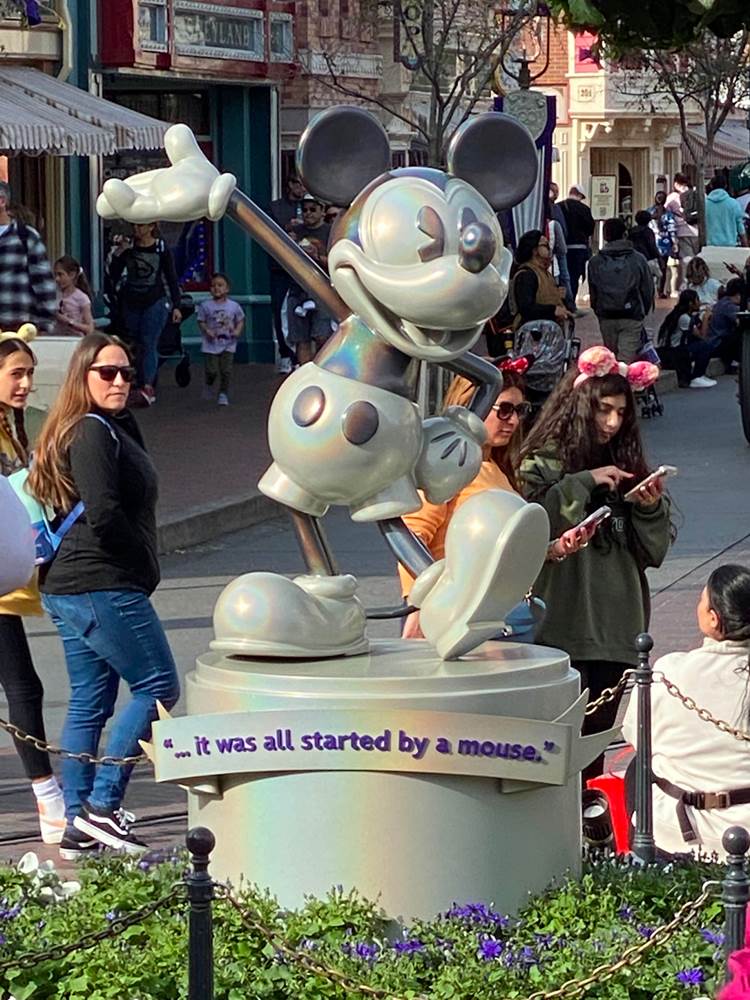 - As part of the 100 Years of Wonder Celebration at Disneyland, a Disney100 Platinum Mickey Mouse statue was installed in Town Square on January 25th.