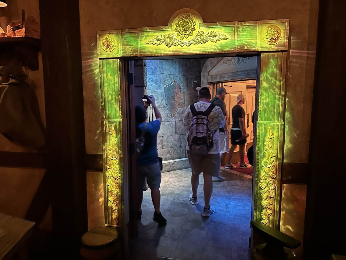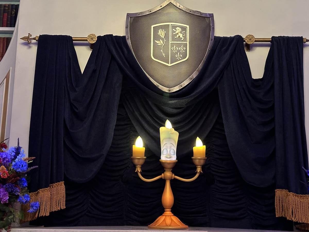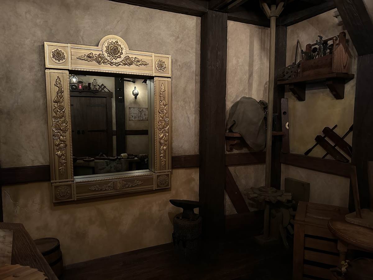 Guests can once again step into Belle and Maurice’s quaint country cottage and marvel at the charming decor. Next, tour Maurice’s workshop, where you’ll see his inventive gadgets—and a special enchanted mirror the Beast gave to Belle. From there, guests step into the mirror and through it, being magically transported to the Beast’s castle.