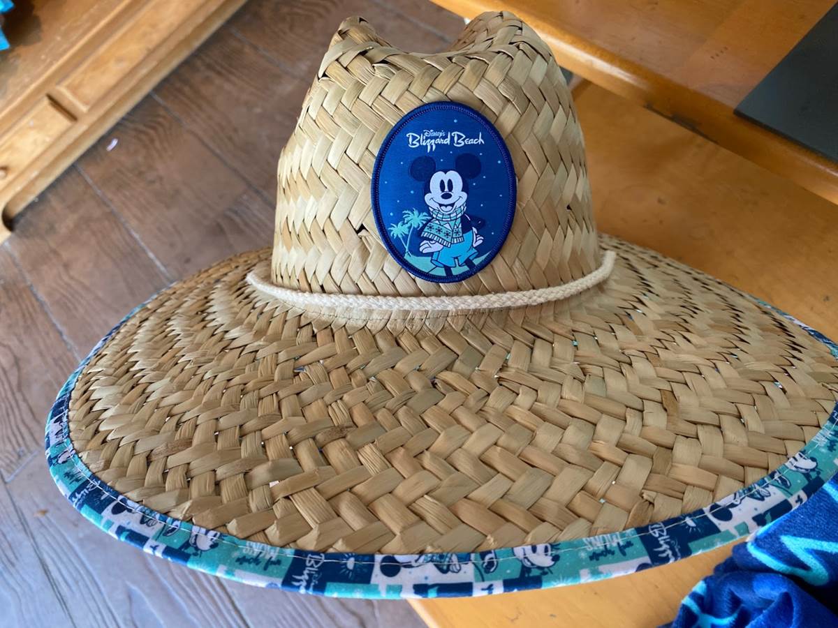 This new line of merchandise features similar artwork with Mickey, Minnie and the icon of Blizzard Beach, Mount Gushmore. Above is a Tervis tumbler, retailing for $44.99. Below, the design is subtly worked into a large beach hat ($34.99).