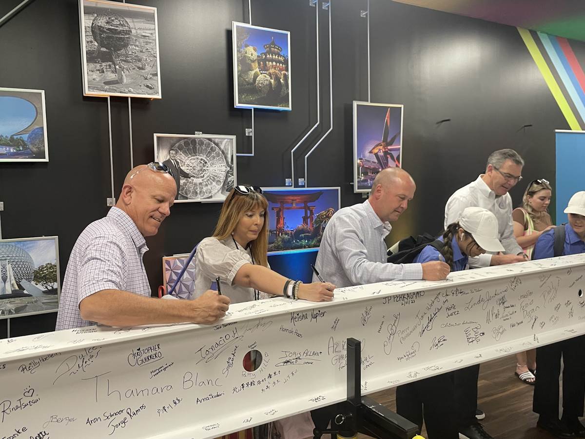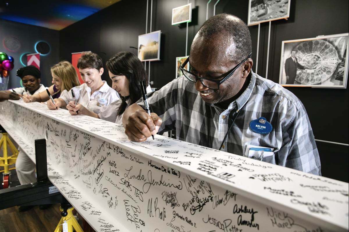 - Joined by Walt Disney World President Jeff Vahle and Jason Kirk, Senior Vice President Operations, EPCOT Cast Members gathered to sign their names on a steel beam that will be part of World Celebration later this year.