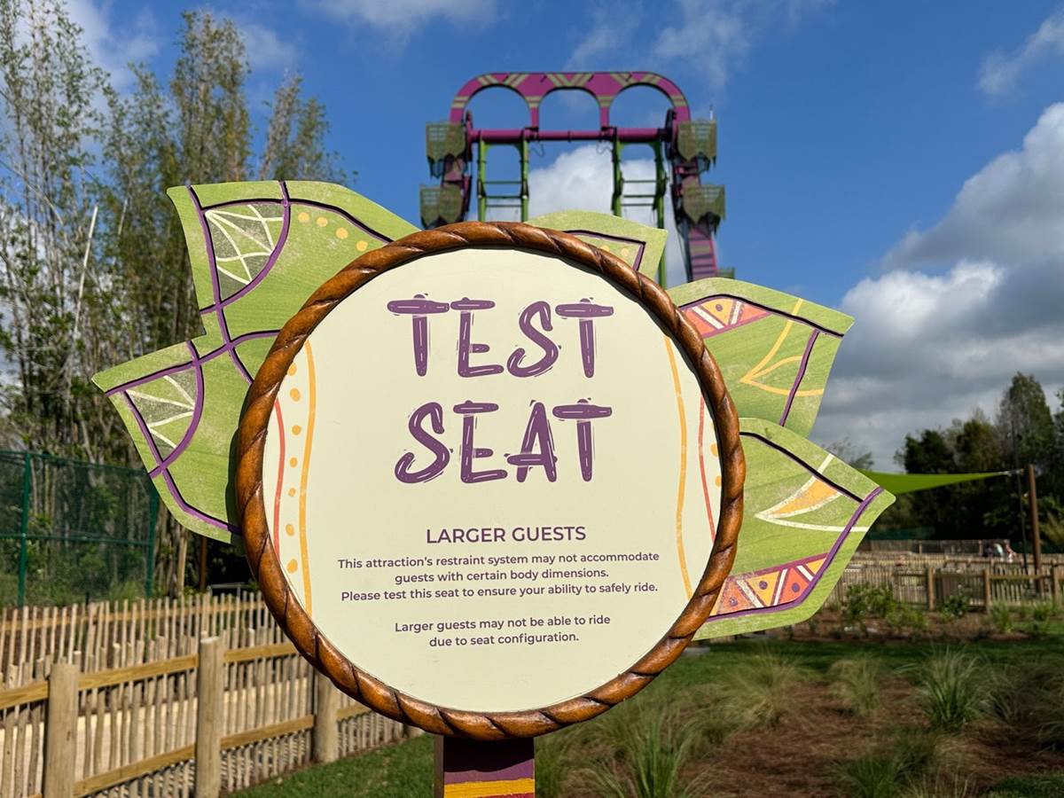 A test seat for the attraction is located outside the attraction, which features a 48" height requirement. Be sure to try this out before you board to make sure you are able to ride.