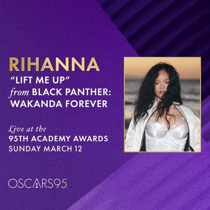 - Rihanna will be performing the Oscar-nominated song Lift Me Up from Black Panther: Wakanda Forever at the 95th Academy Awards ceremony.