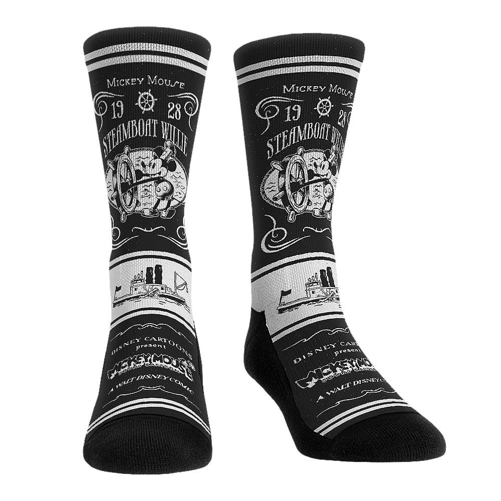 - Rock ‘Em’s signature black-soled socks get a lively look with two vintage designs that fans will love. On both pairs, Mickey Mouse is at the helm of the steamship and whistling his cares away.