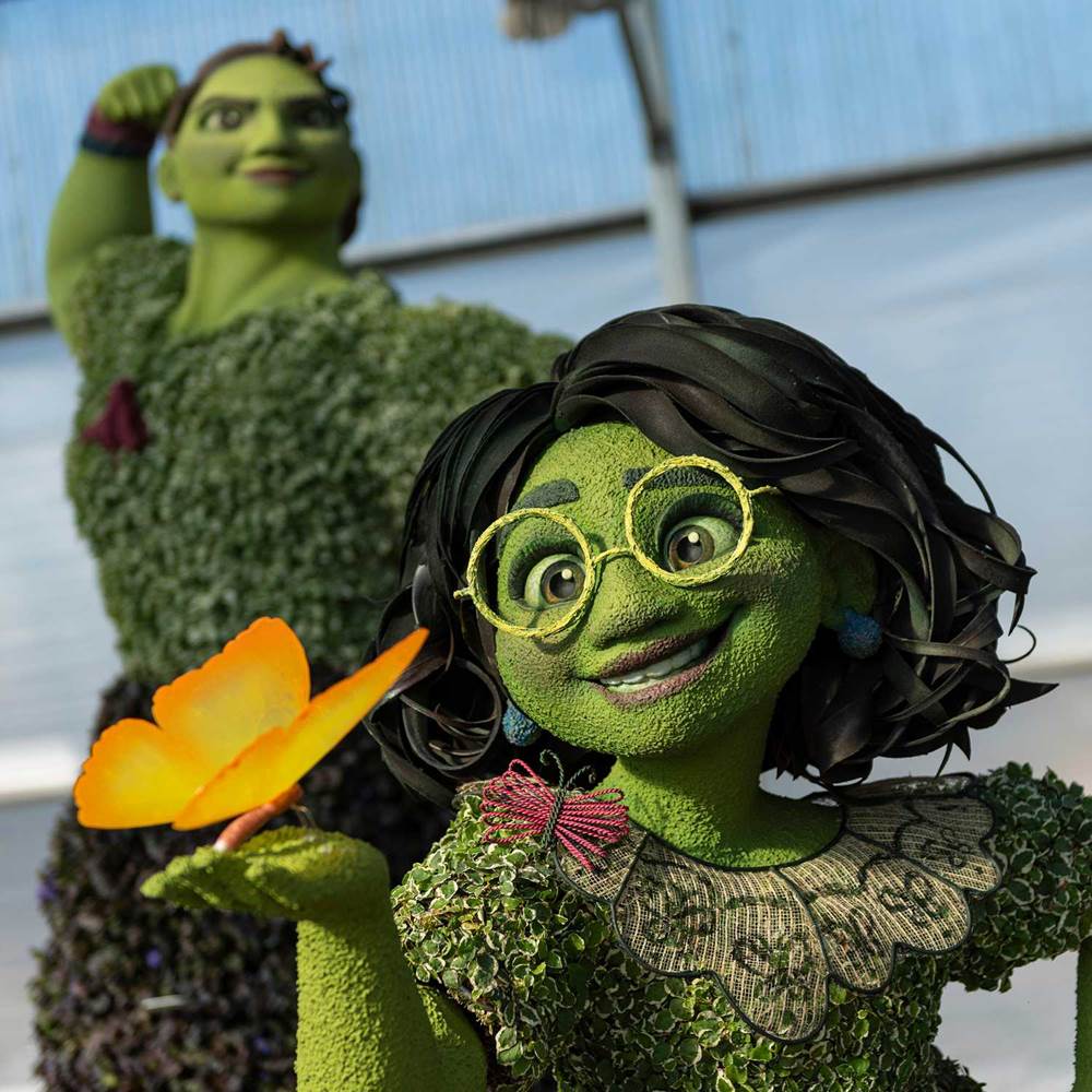 - Each imaginative topiary features details inspired by each character, including Isabela creating beautiful flowers between her hands and an illuminated butterfly for Mirabel.