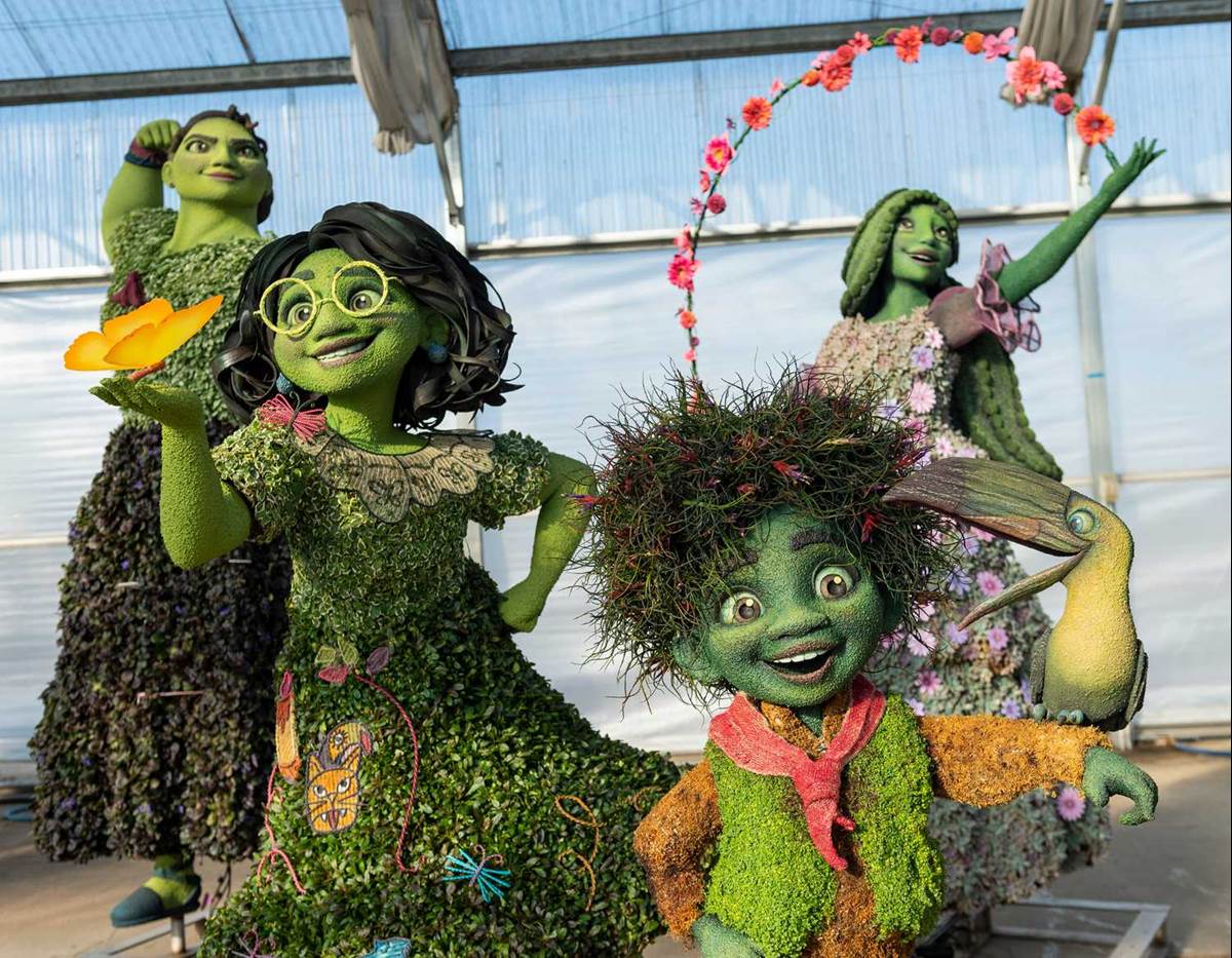 - Making their debut this year, topiaries of Mirabel, Antonio, Isabela and Luisa from Encanto will greet guests in the main entrance of EPCOT.