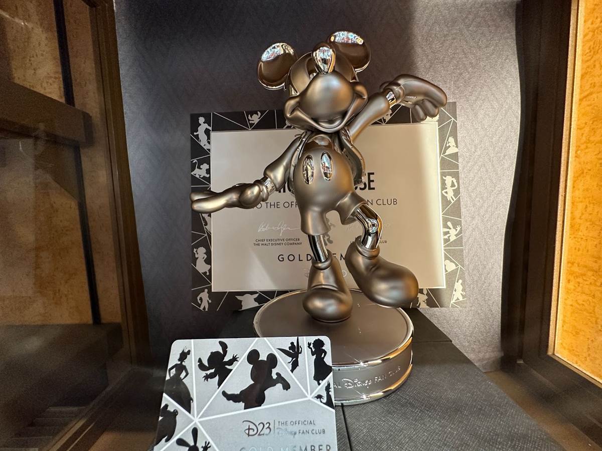 - The display features the Mickey Mouse “Leader of the Club" Milestone Statue as well as the new membership card designs.