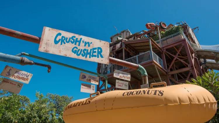 - Crush ‘N’ Gusher, a thrilling “water coaster" that features three 400-foot-long tube slides named for the various fruits they once transported.