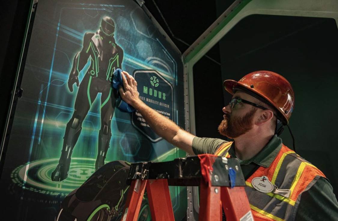 Though it’s still in previews and has been for a few weeks now, TRON Lightcycle / Run is due to open next month, and Imagineers are still putting some of the finishing touches on the attraction, including a new post-show featuring Team Green.