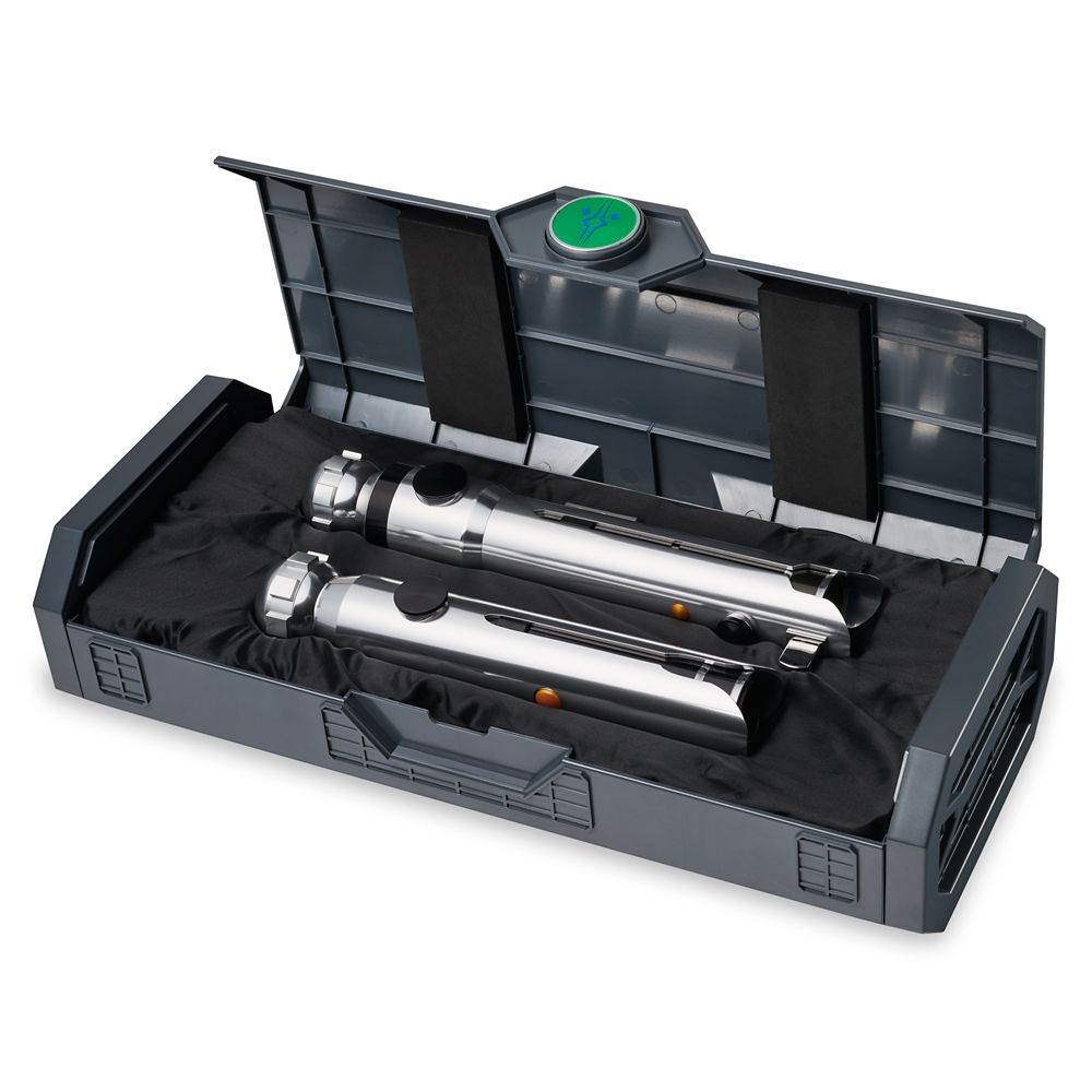 - Each hilt comes in a collectible carrying case and features electronic noise and light effects that activate when connected with a Disney lightsaber blade (sold separately).