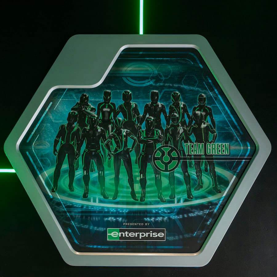 - Team Green and the programming of their Lightcycle are displayed throughout the space, connected by a single line of green light that power up the Team Green stories in unison.